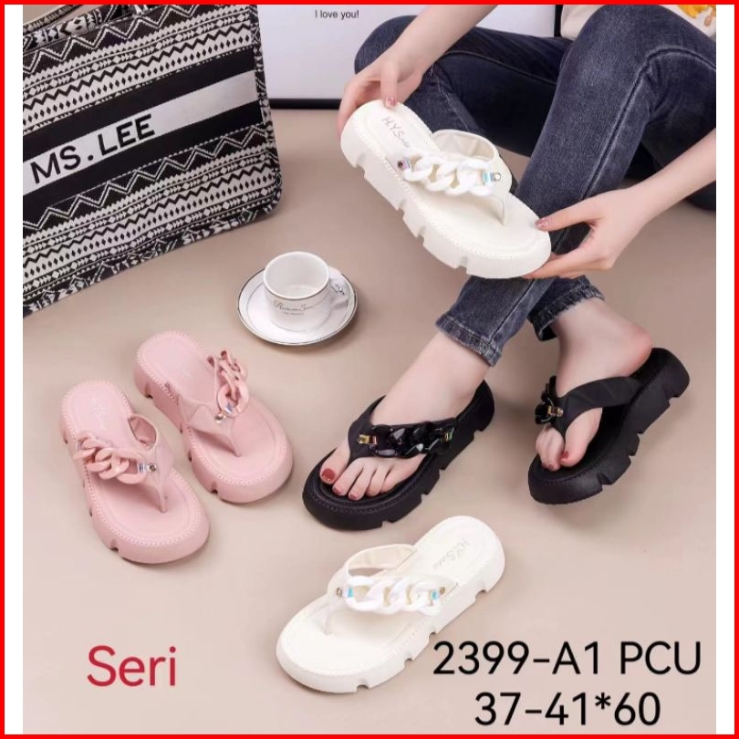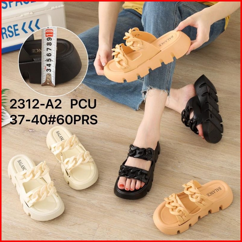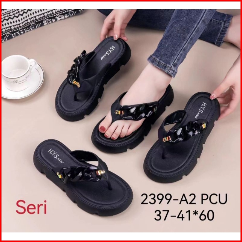 Sandal Wedges Wanita Import Ban Dua Ring Rantai Balance 2312-a2