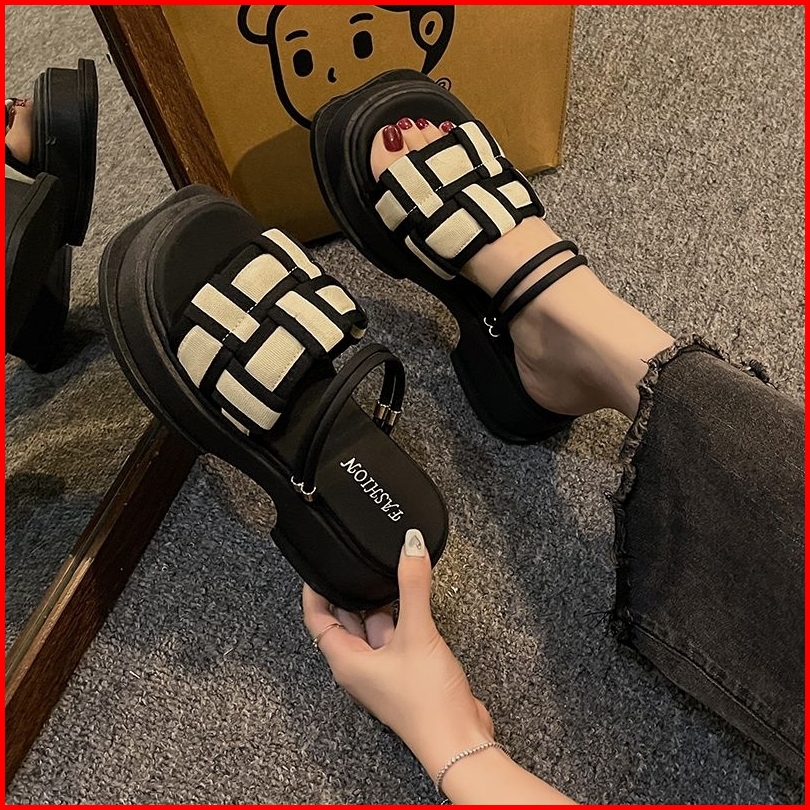 Sn0996 - Sandal Wedges Fashion Wanita Import - Bisa Dipakai 2model - Free Box Premium