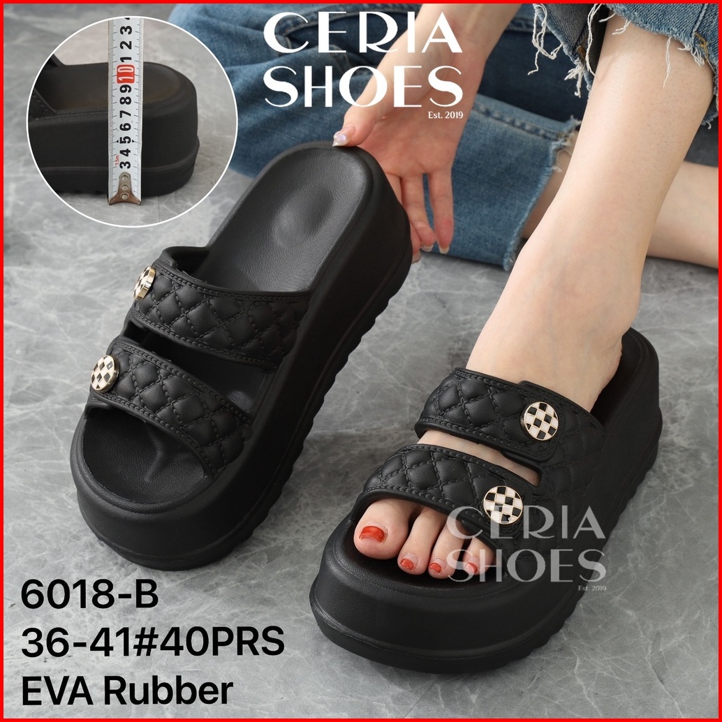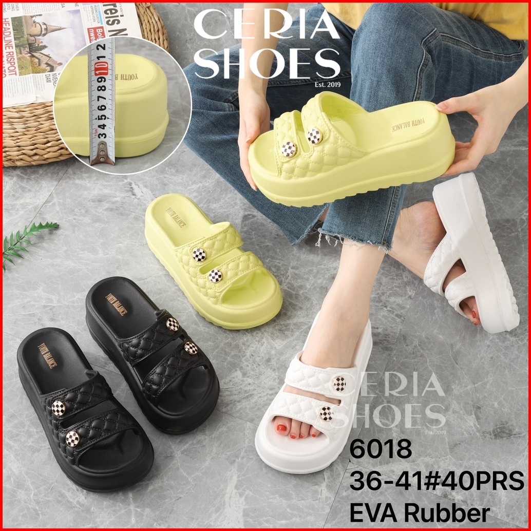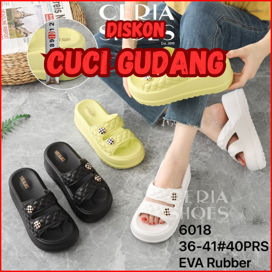Sale Sandal Slop Wedges Wanita Korean Premium Import Platform Eva Rubber Non Slip Sole Double Strap Balance 6018