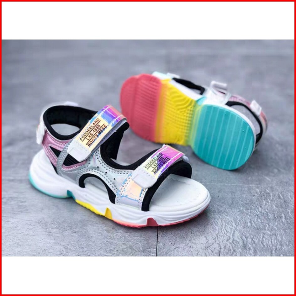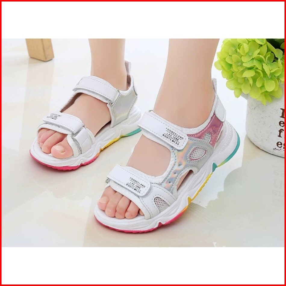 Sendal Gunung Anak Cewe Cantik Sol Pelangi Bahan Kombinasi Hologram Velcro Kk 56