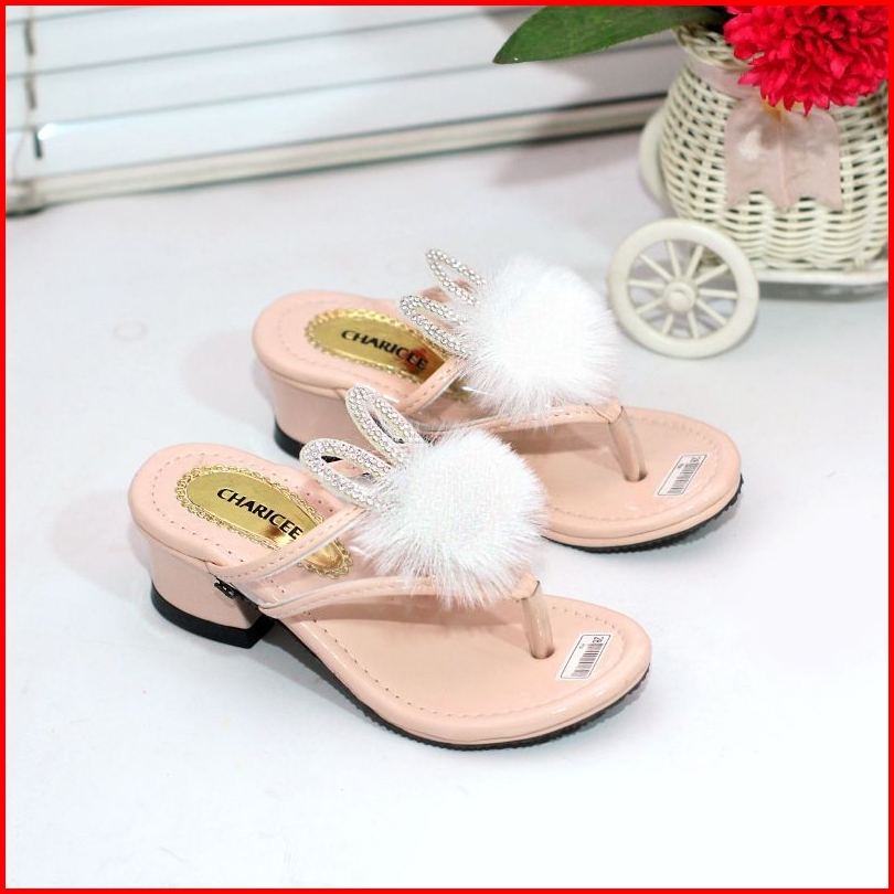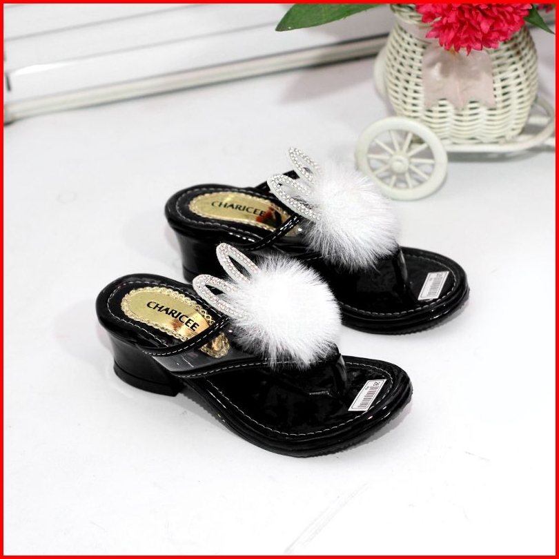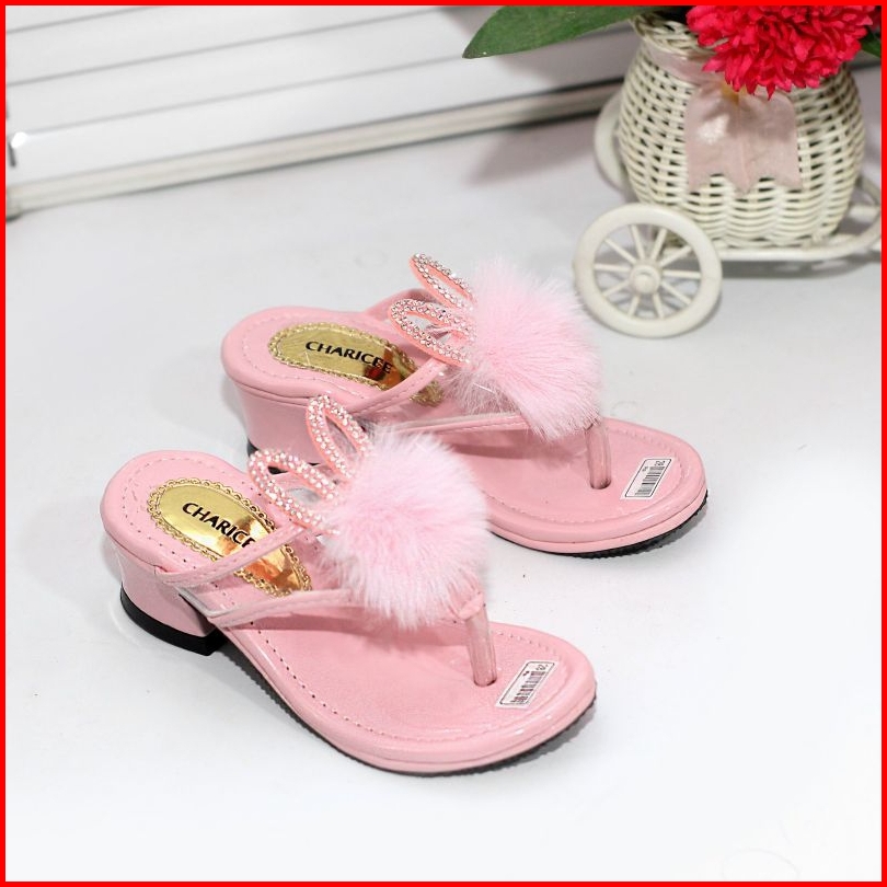 Sandal Anak Perempuan Hak Jepit Mika Bulu Pita Wl 44