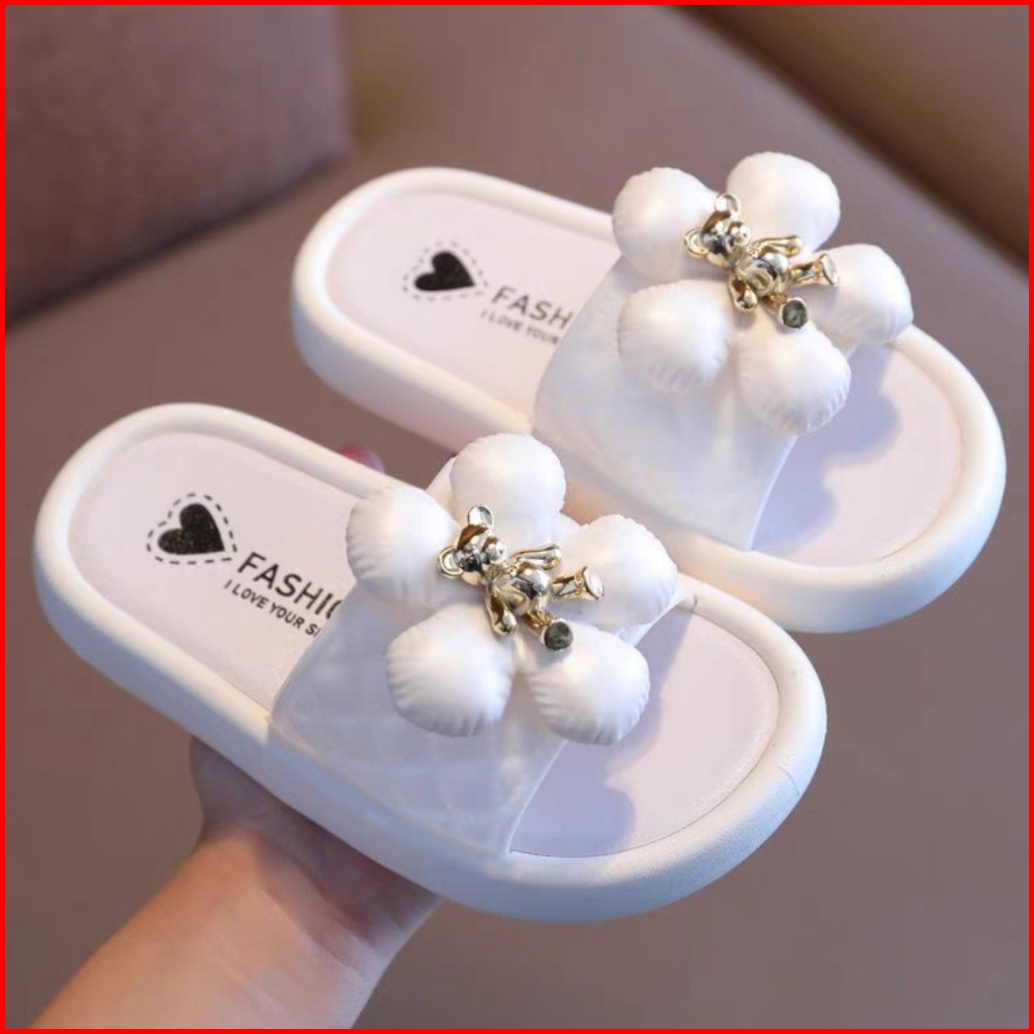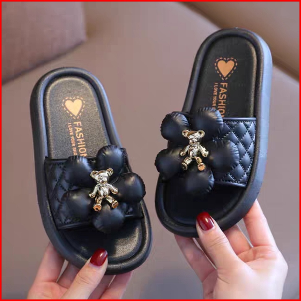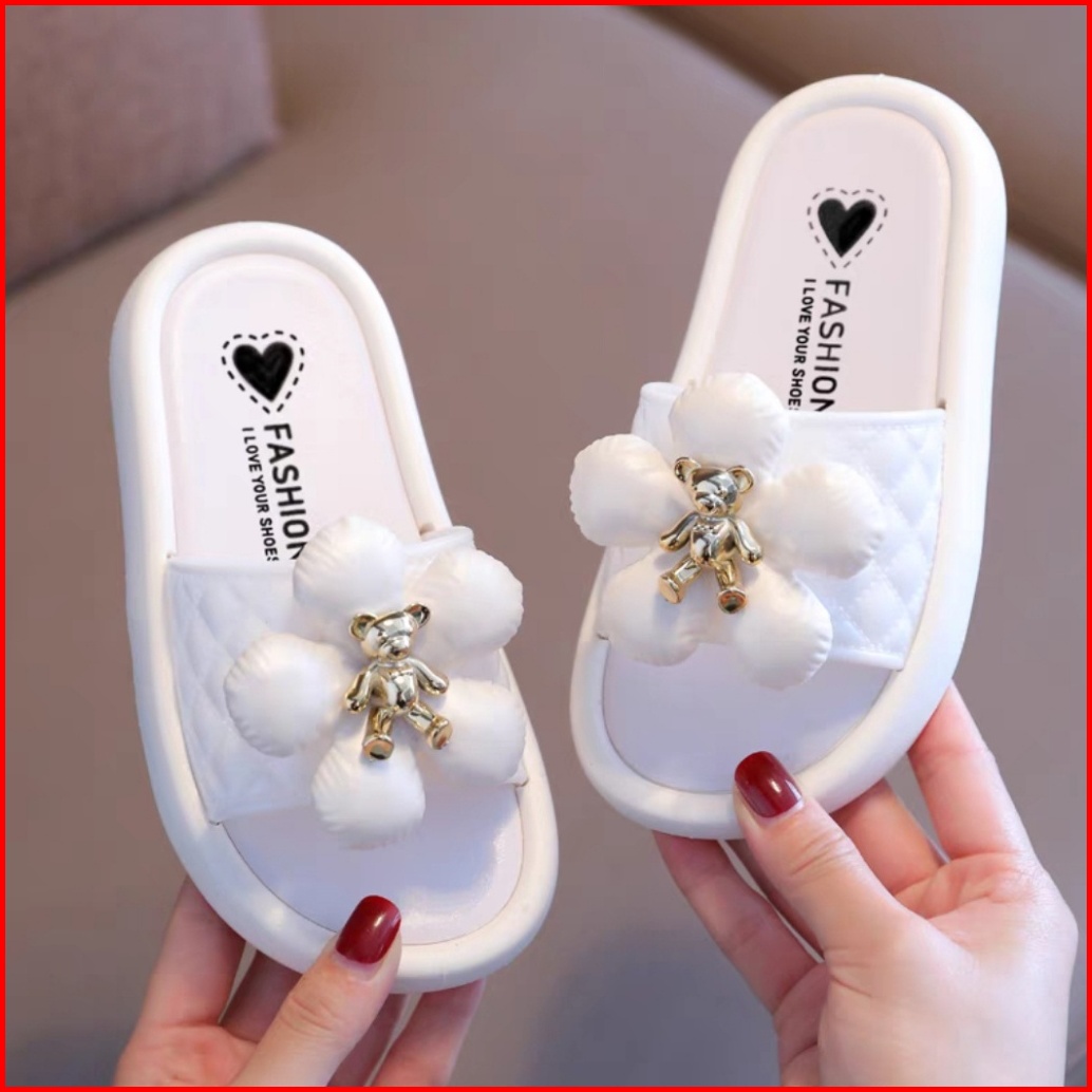 Promo 9.9 Import Kakimanis B327 Sandal Slop Flower Bear Anak Perempuan Kekinian Sendal Casual Slop Anak Cewek Anti Slip