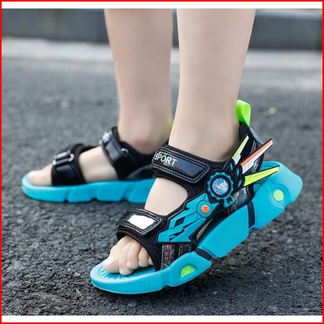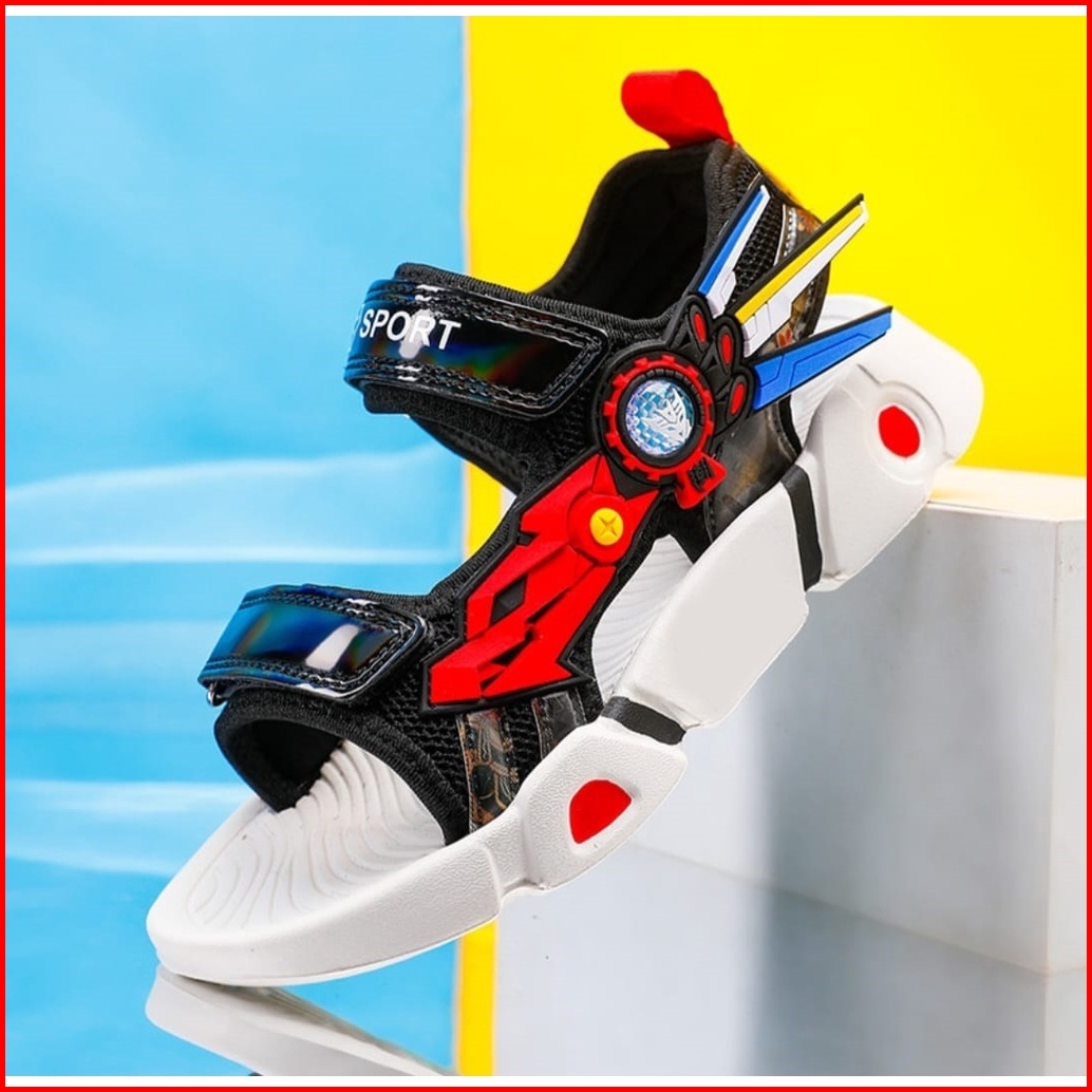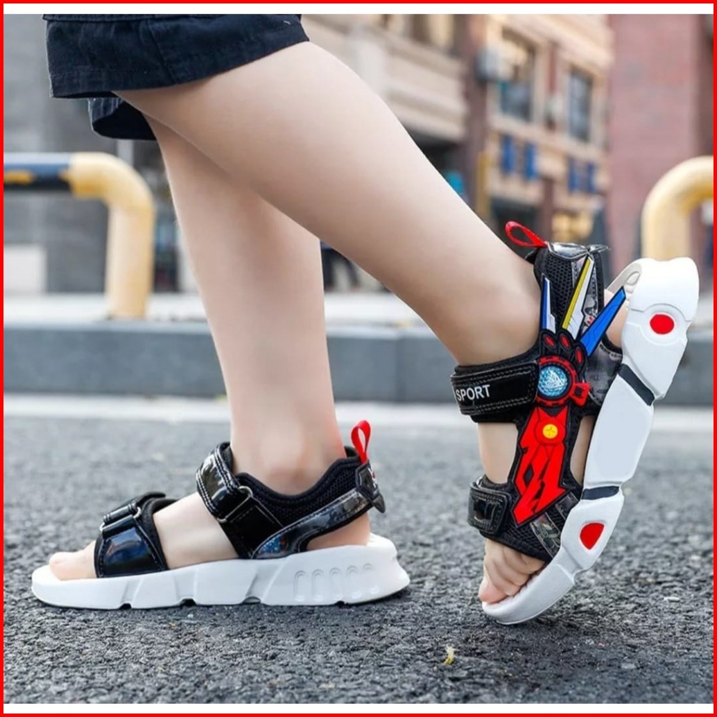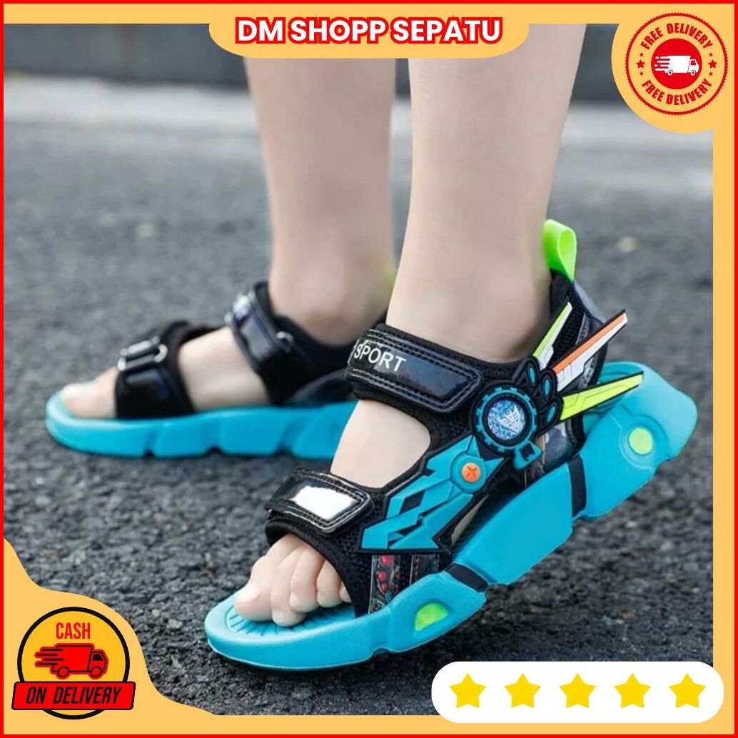 Dm-shopp Sandal Anak Laki - Laki Model Hak Datar Kombinasi Double Velcro Webing Sol Anti Licin Size 26-35 Model Karakter