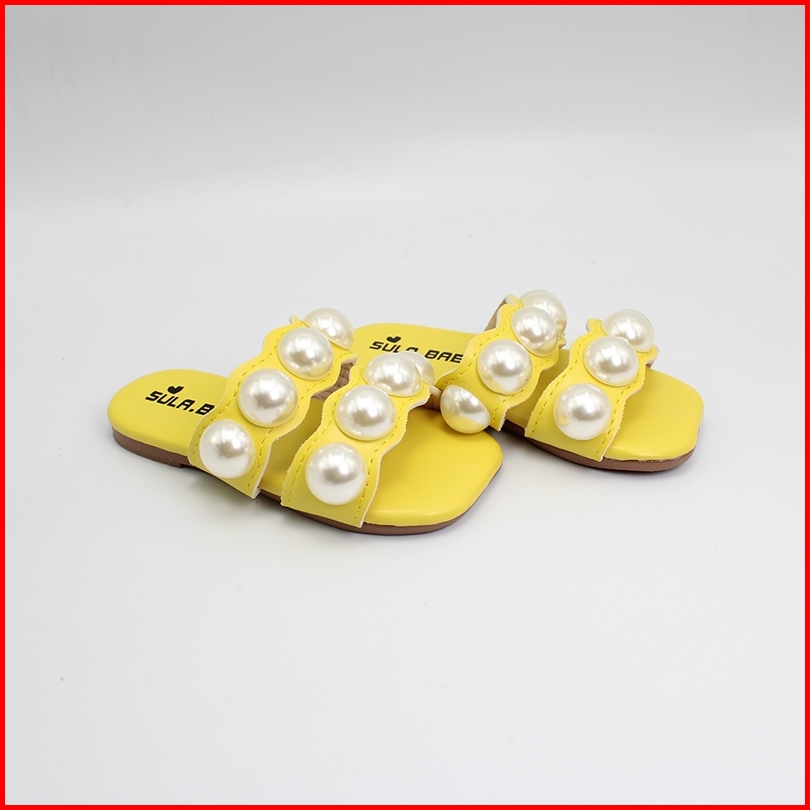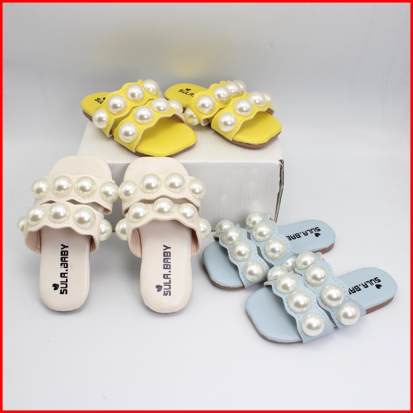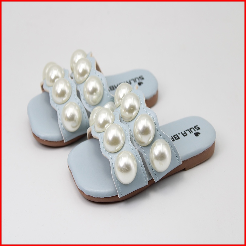 Sandal Anak Perempuan Sandal Mutiara Lucu Bagian Bawah Lembut Non-slip Kulit Pu Flip-flop Free Box