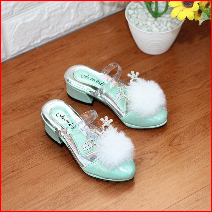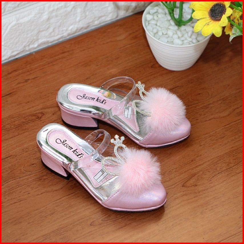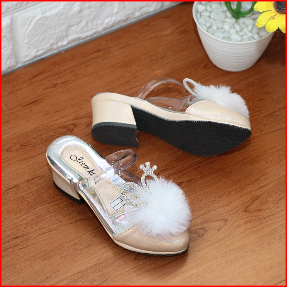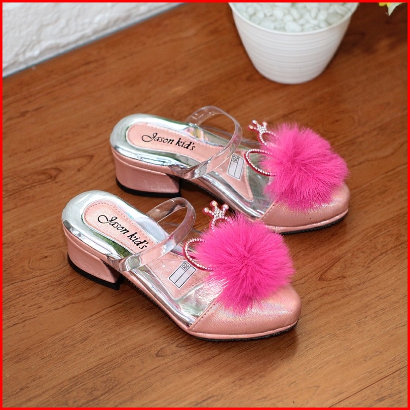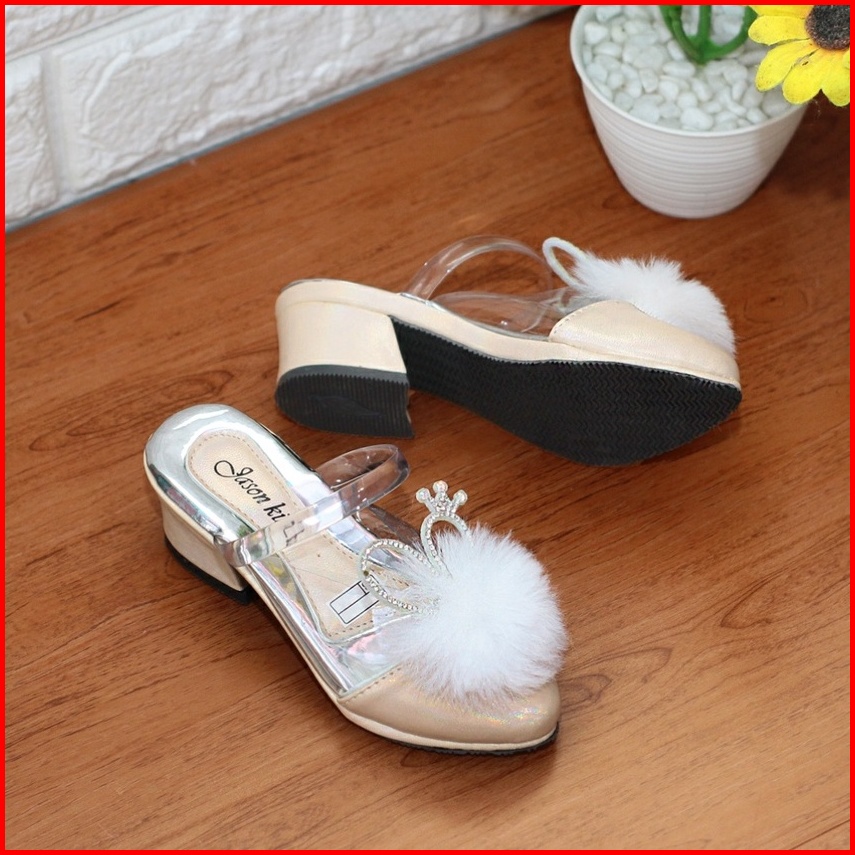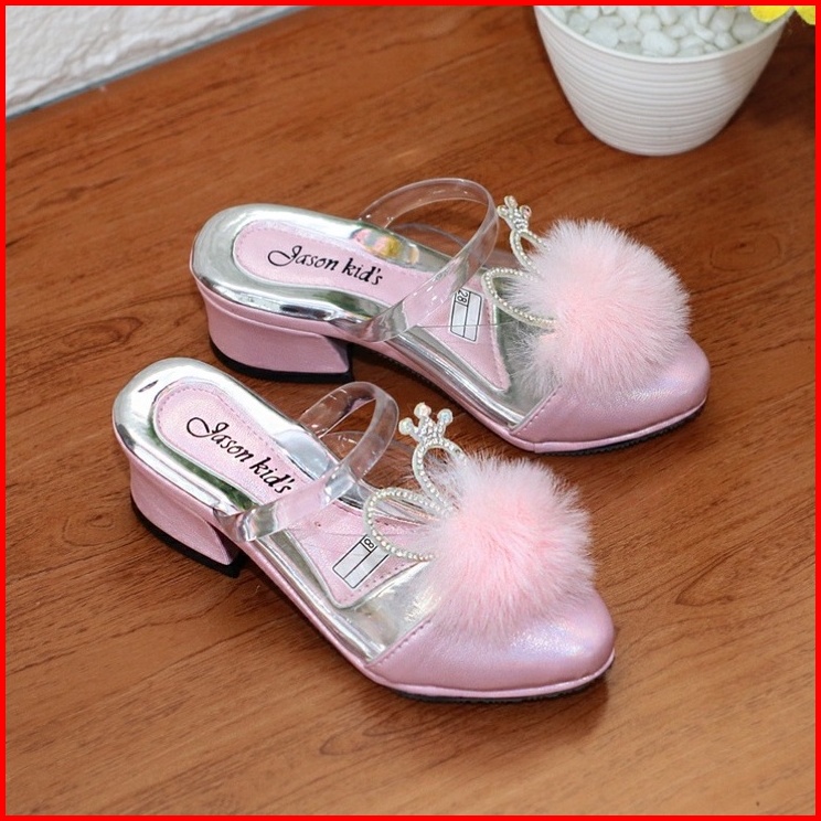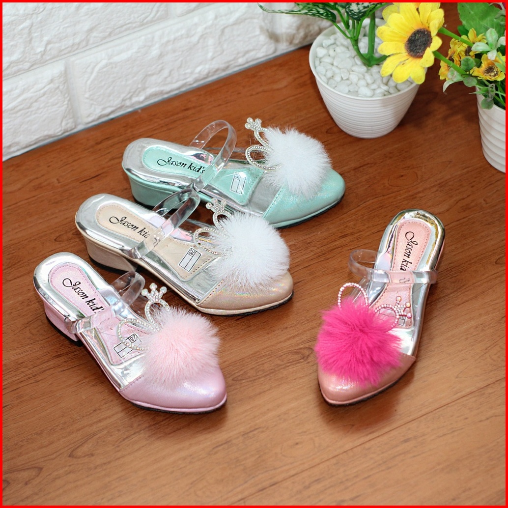 Sandal Pesta Anak Perempuan Hak Tahu Motif Bulu Sm-01
