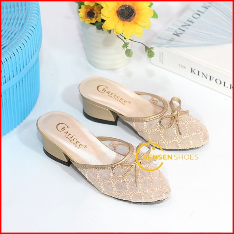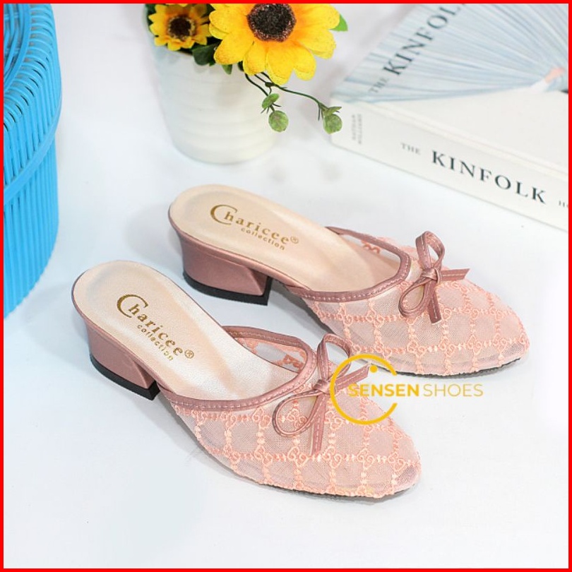 Sandal Pesta Anak Perempuan Hak Tahu Motif Pita Brukat Jala