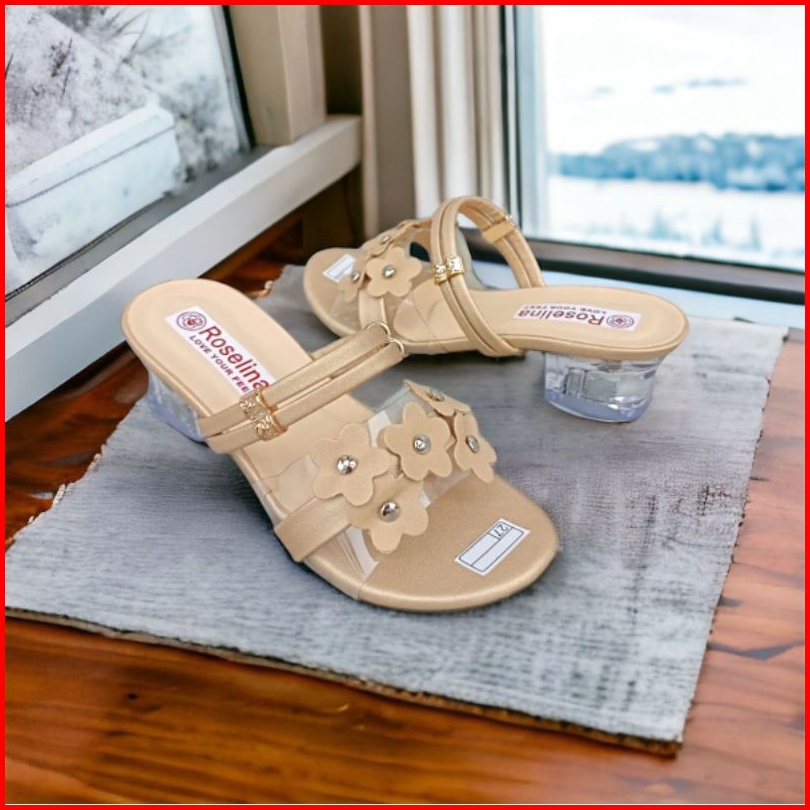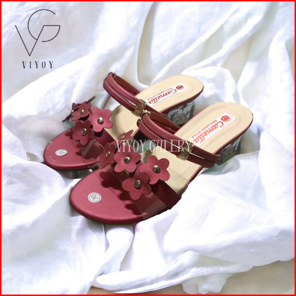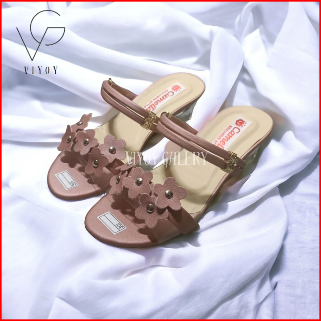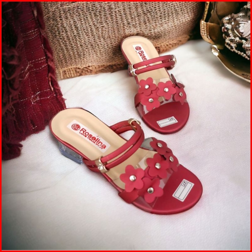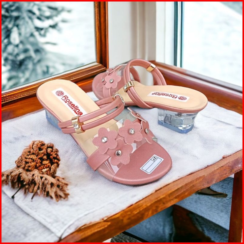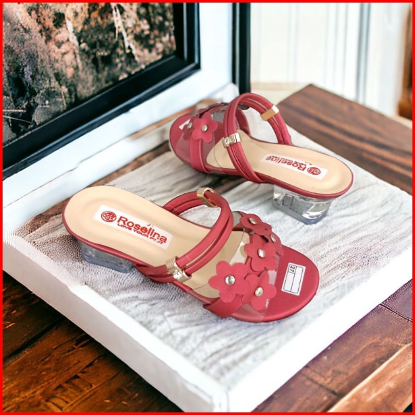 Sandal Heels Kaca Anak Sampai Dewasa Heels Hak Kaca Mika Bunga