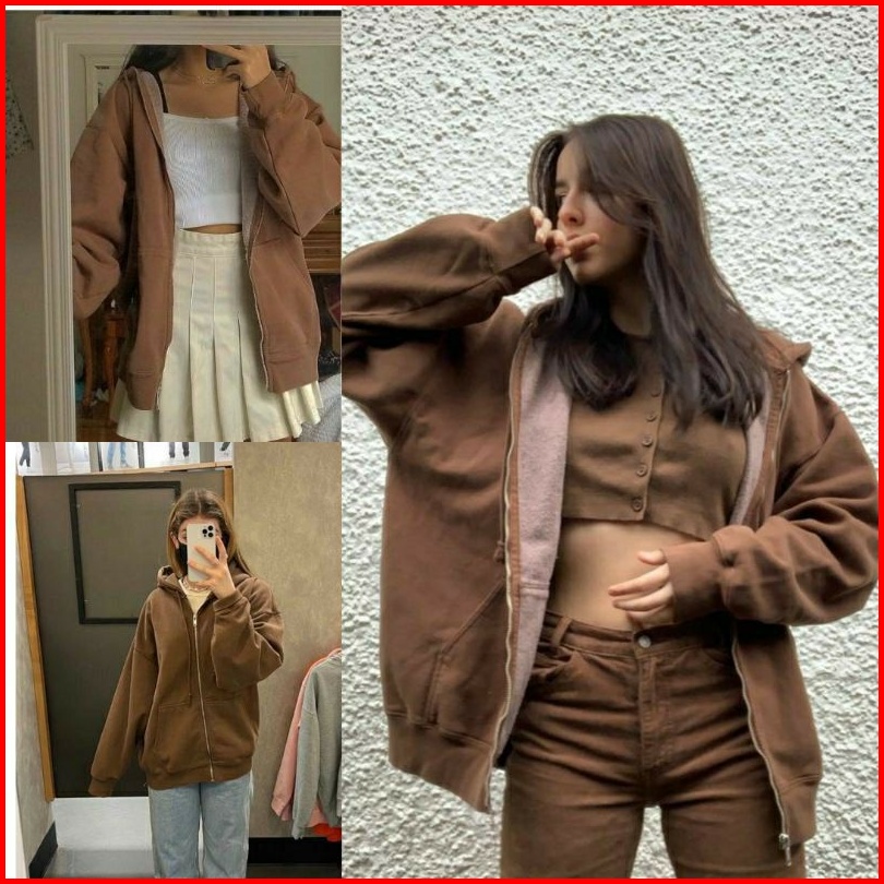 Oversize Hoodie Polos Zipper L Xl Xxl Jaket Switer Wanita Korea Dupe Carla