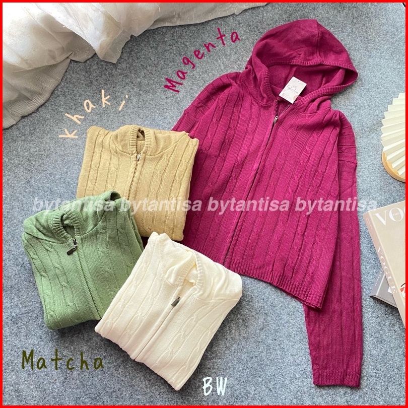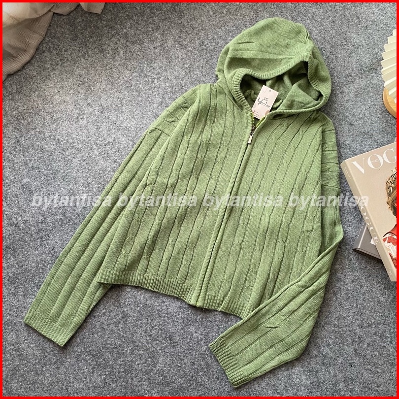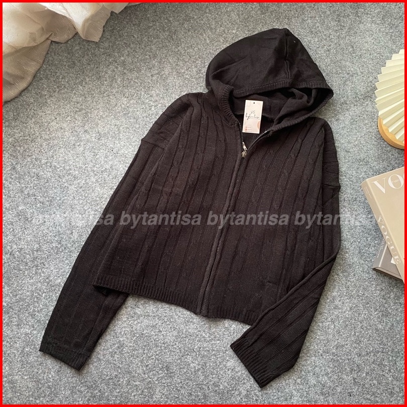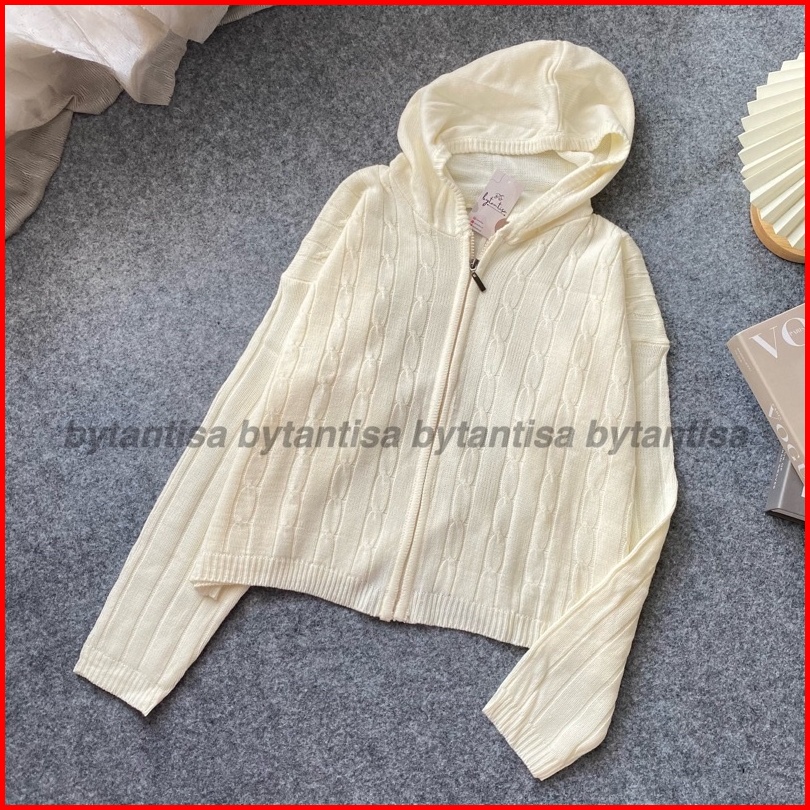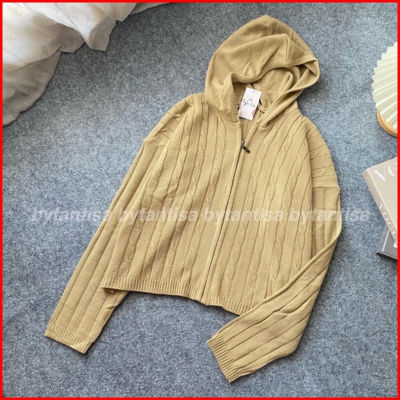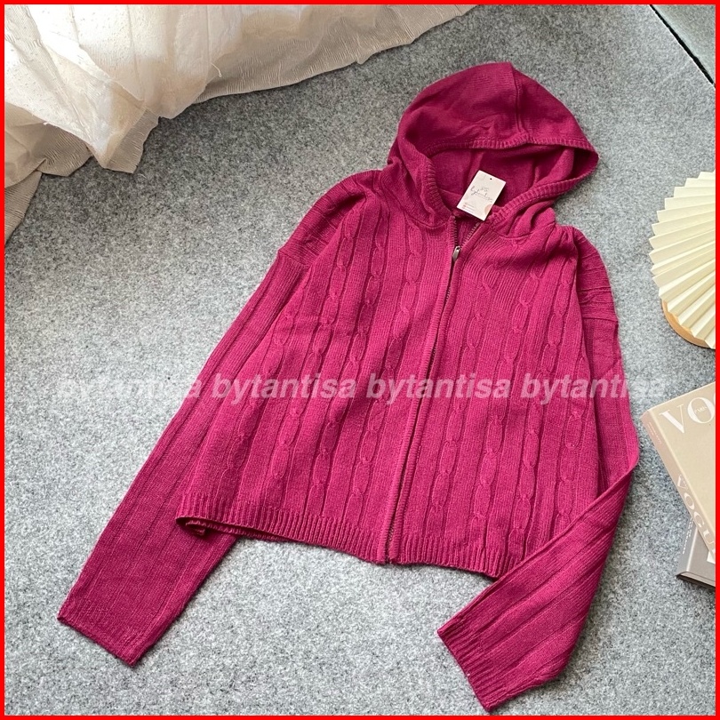 Hoodie Jaket Zipper Motif Cable Semi Crop Zico