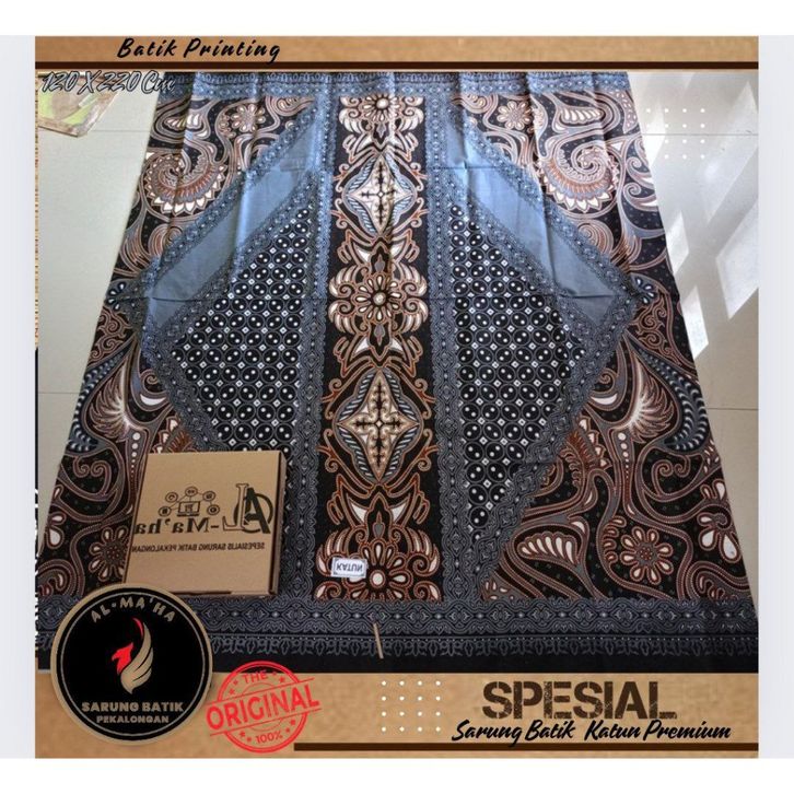 Sarung Batik Premium Pekalongan Pria Dewasa Motif terbaru kain Katun Abu Abu Hitam