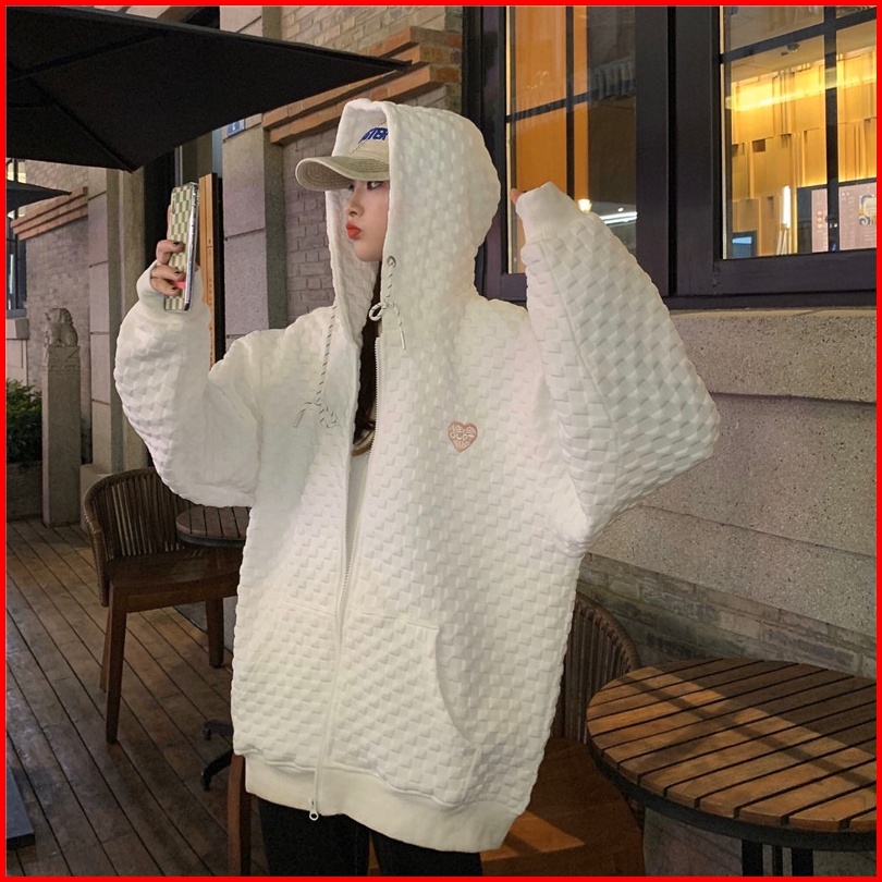 Uninice Jaket Hoodie Gaya Korea Modis Longgar Ritsleting Dan Penutup Kepala Jaket Outdoor