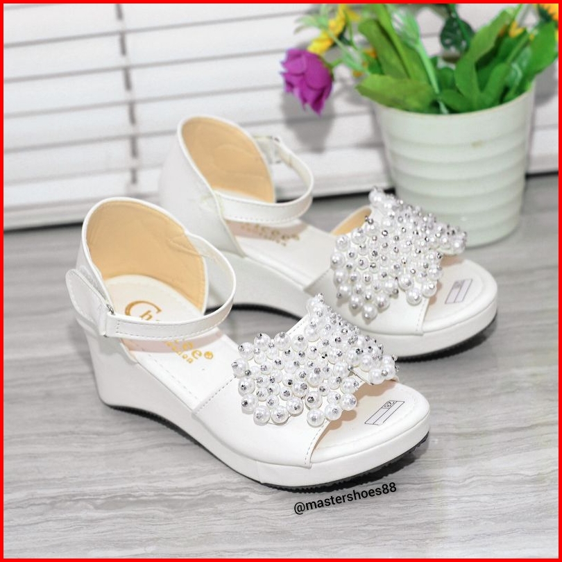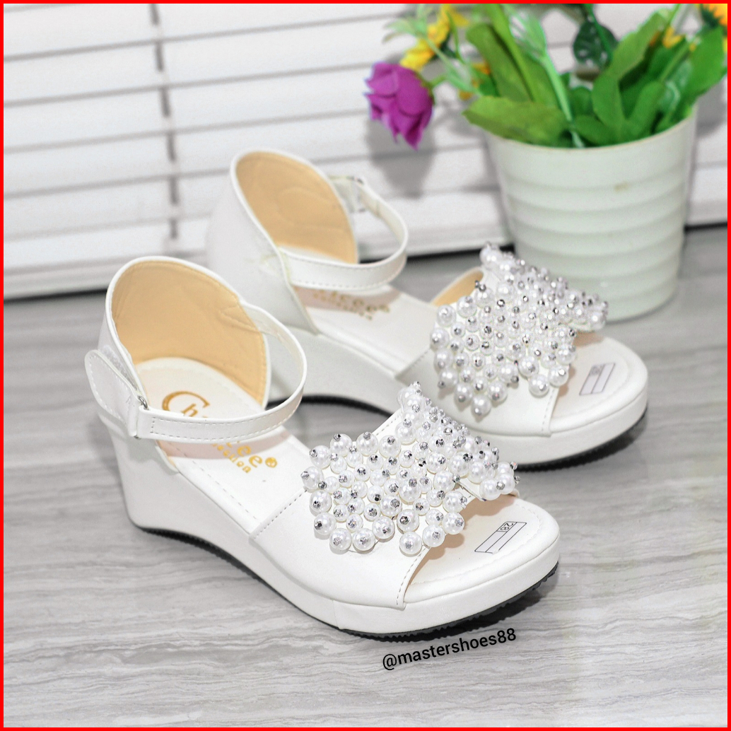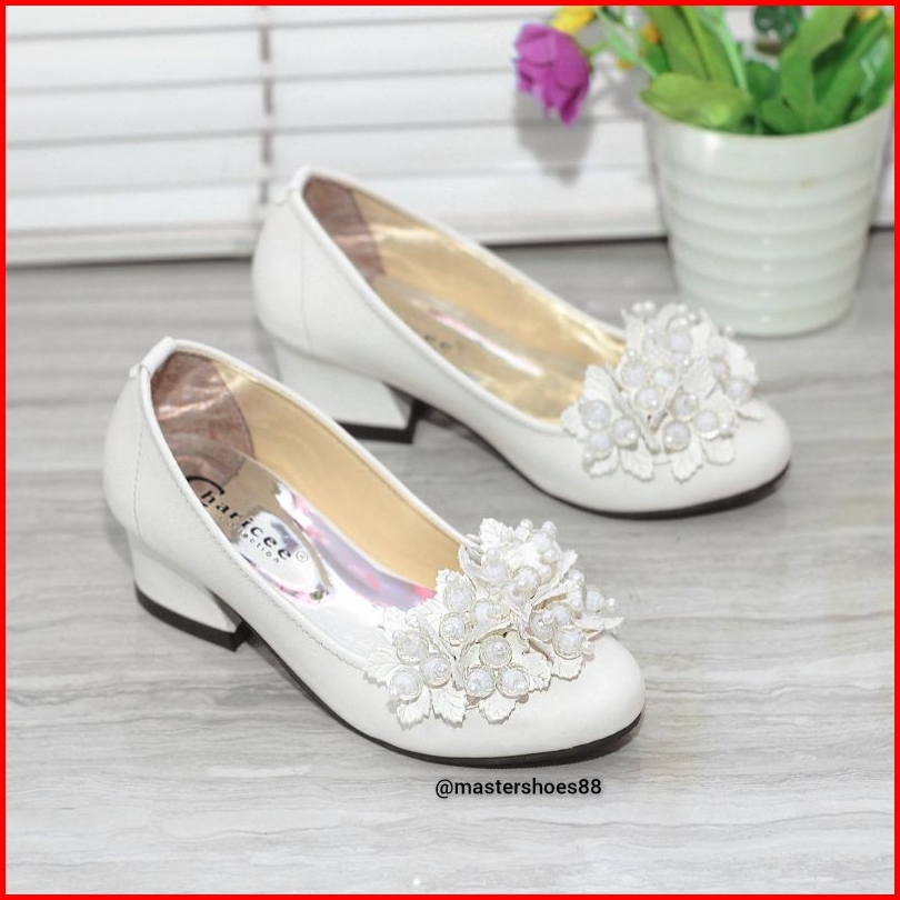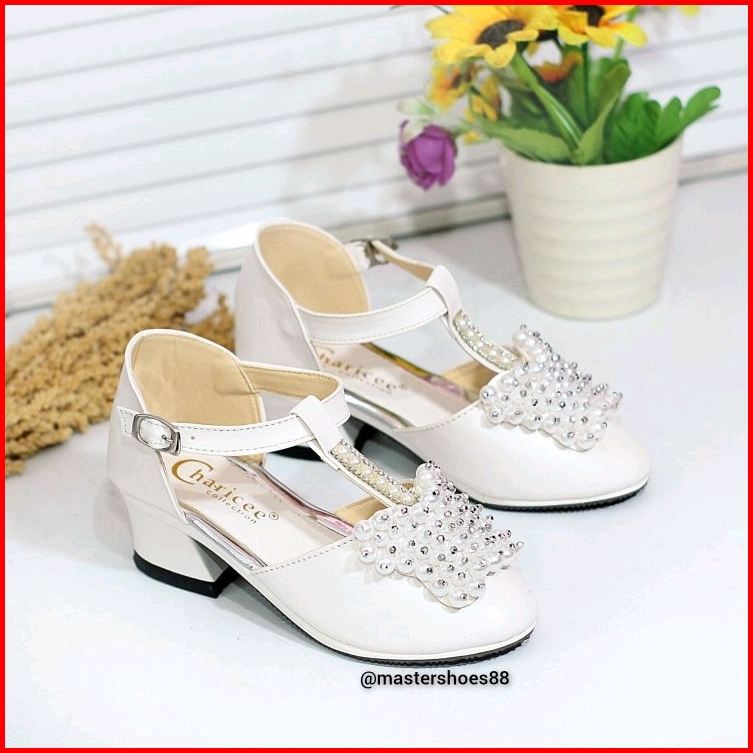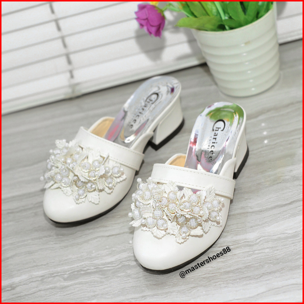 Master Pt01 - White Collection Sandal Heels Anak Perempuan Hak 3cm Variasi Permata Sepatu Selop Anak Cewe Terbaru