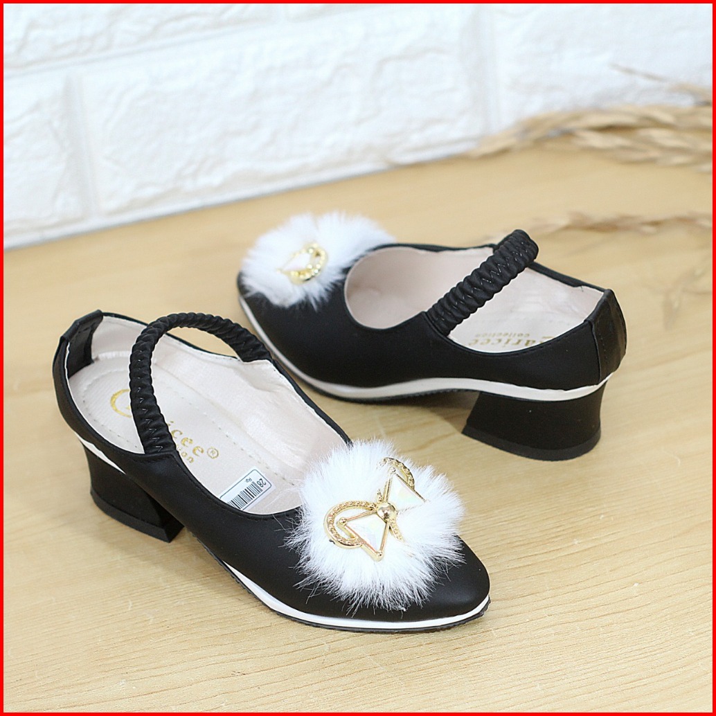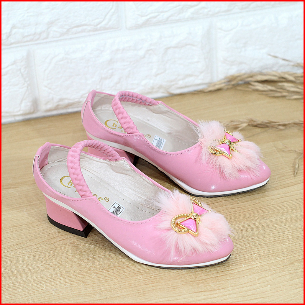 Sepatu Sandal Pesta Anak Perempuan Motif Pita Bulu Hak Tahu 3cm Terbaru