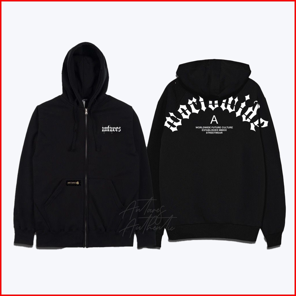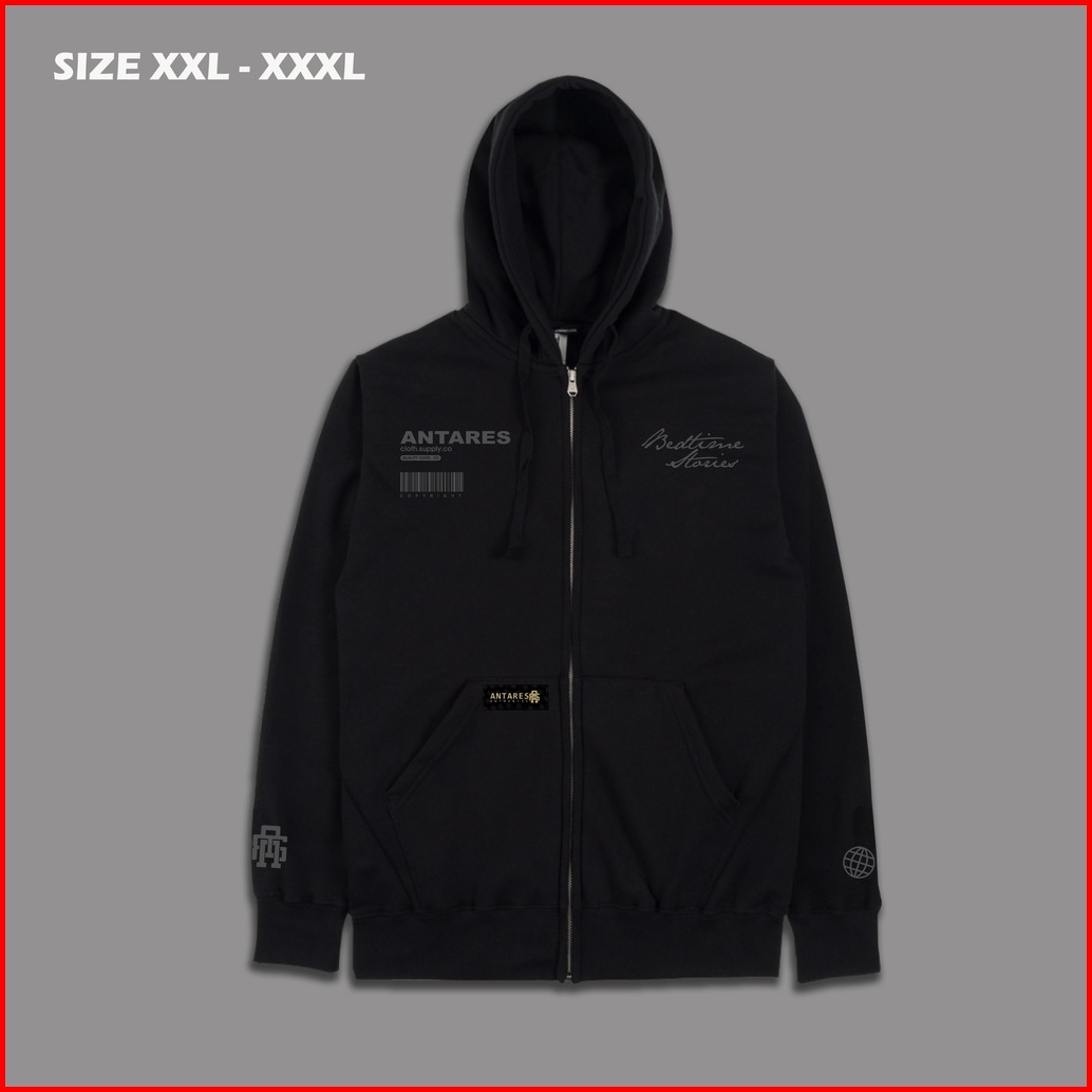 Jaket Zipper Hoodie Antares Distro Bahan Tebal Ukuran Jumbo Oversize L-xl-xxl-xxxl