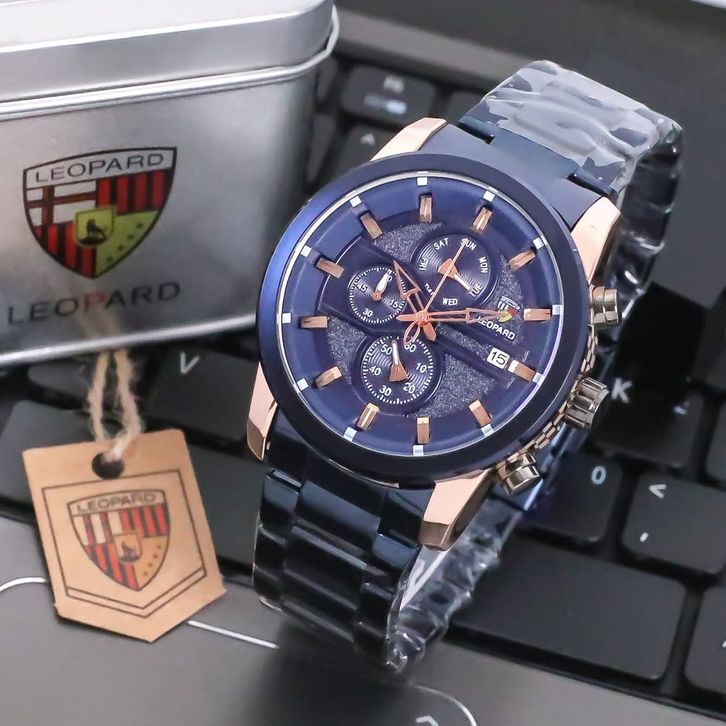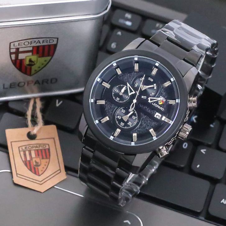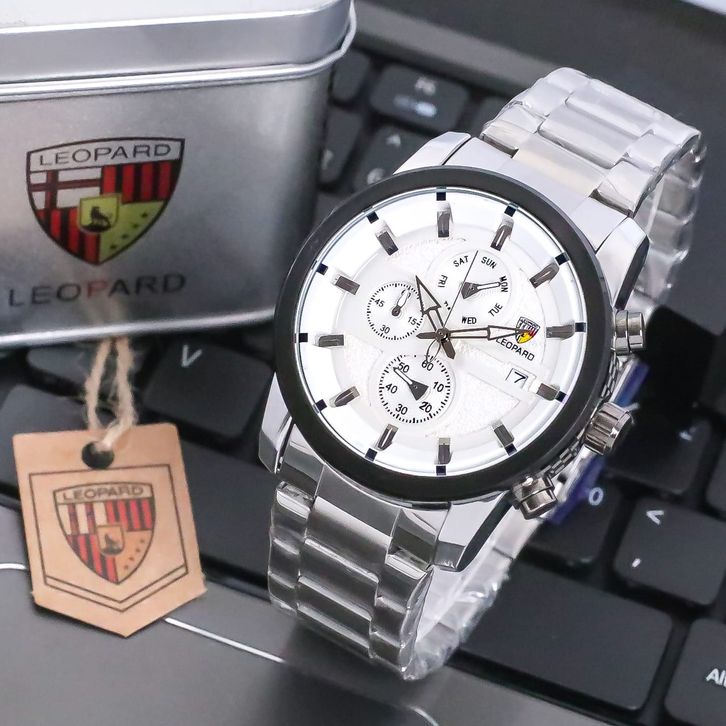 Jam Tangan Pria Rantai LEOPARD Seri 8805A Chrono Tanggal Aktif Free Box dan Baterai Cadangan