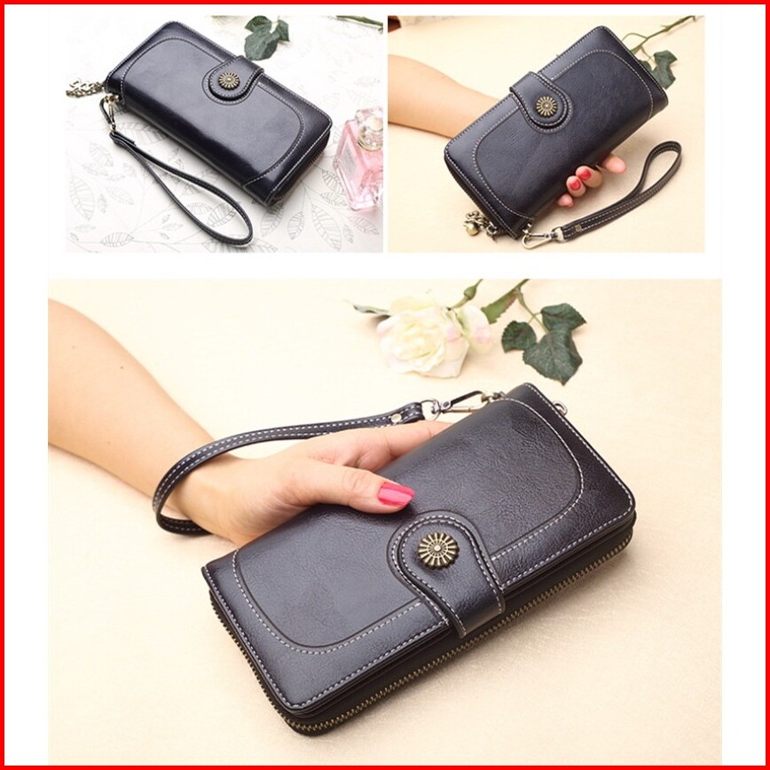 Dompet Panjang Wanita Kulit Premium Pesta Mewah Branded Marin Asli Fashion Korea Tali Murah