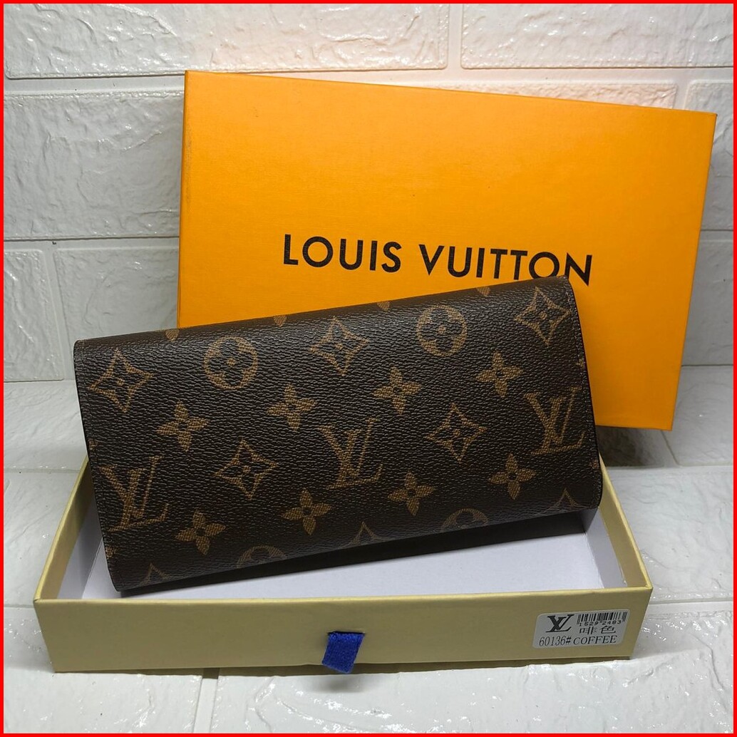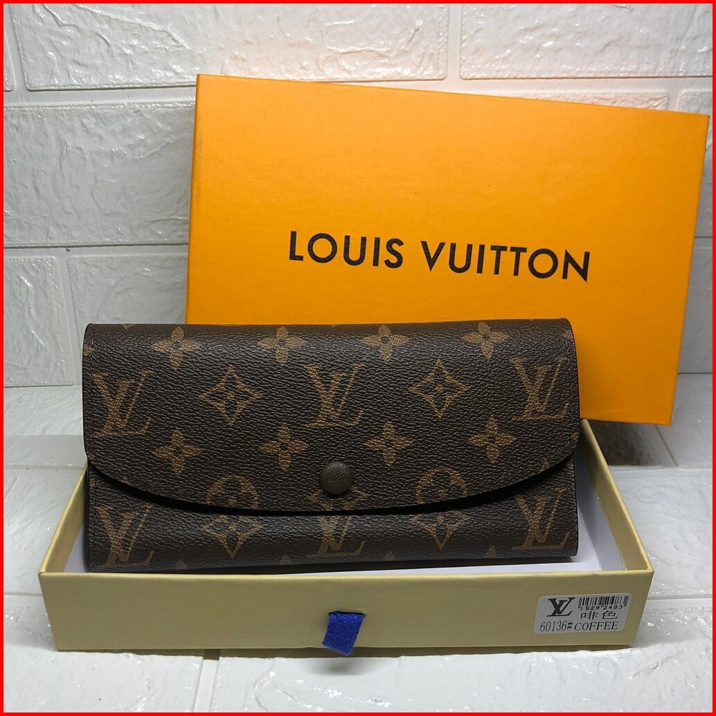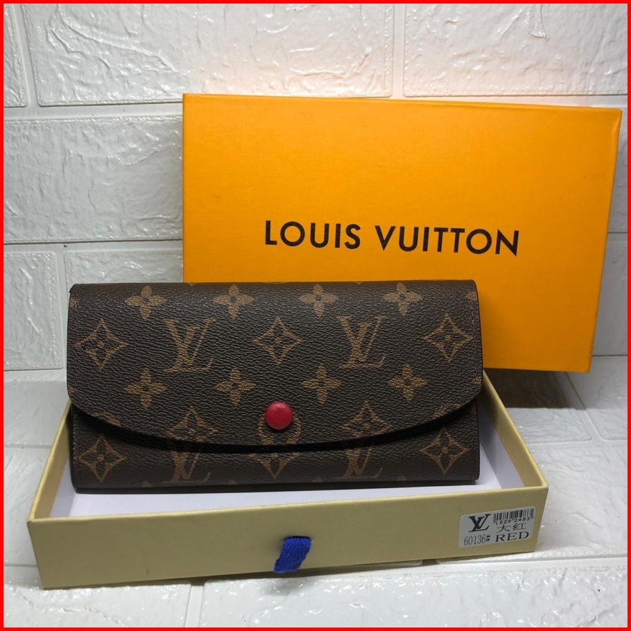 861 60136 Dompet Wanita Monogram Branded Import Coffee Coklat Kancing Merah Hitam Coklat