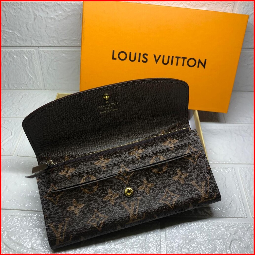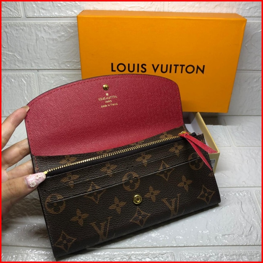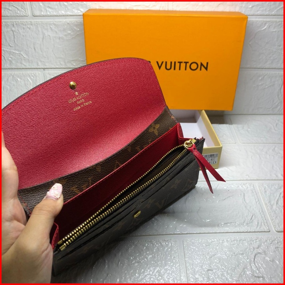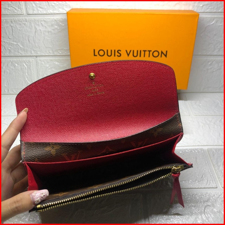 861 60136 Dompet Wanita Monogram Branded Import Coffee Coklat Kancing Merah Hitam Coklat