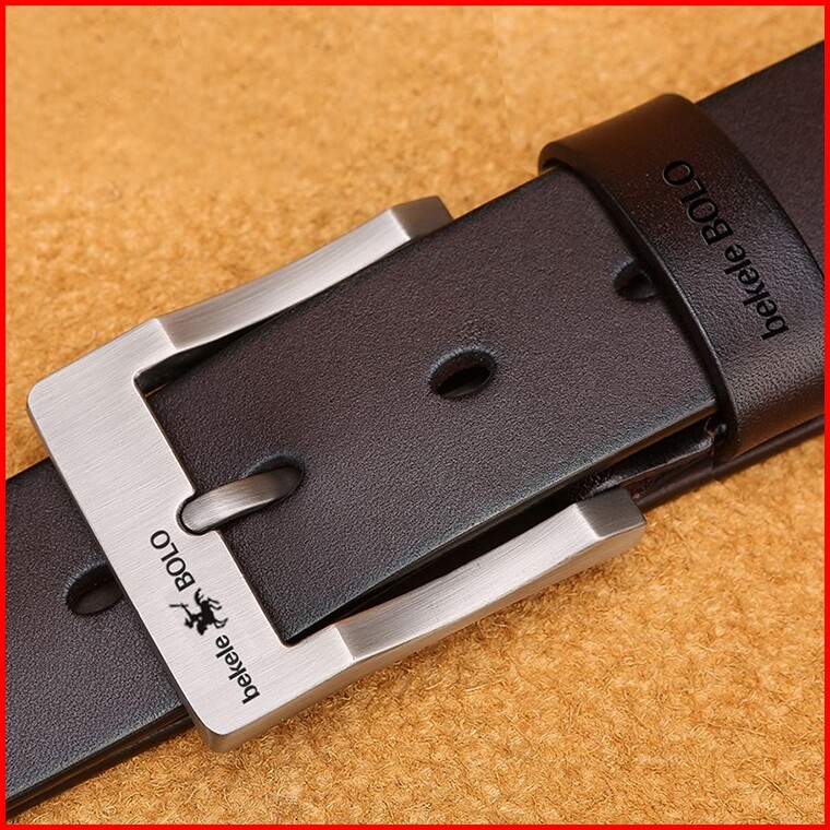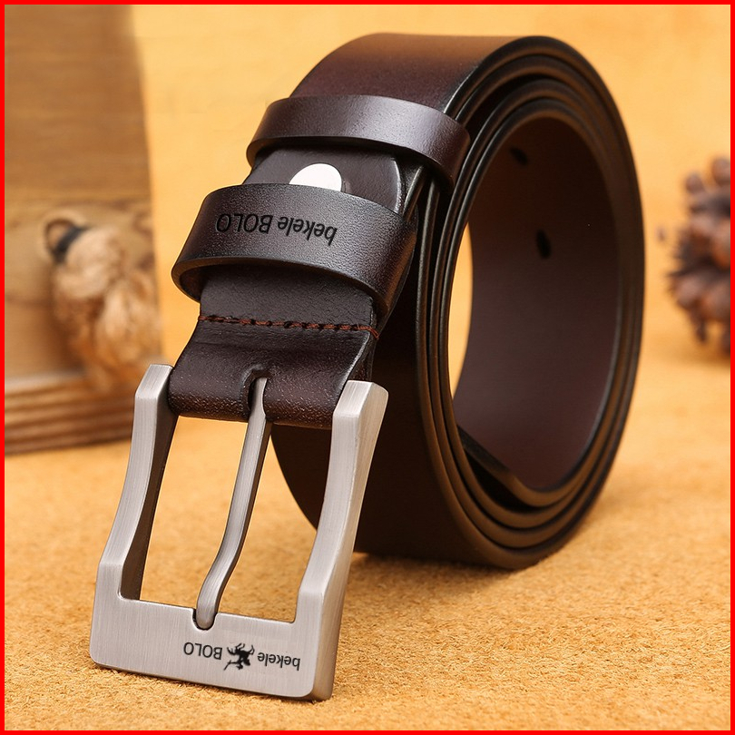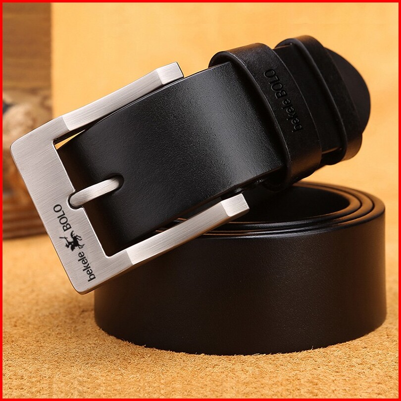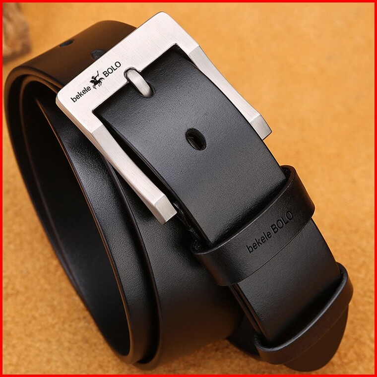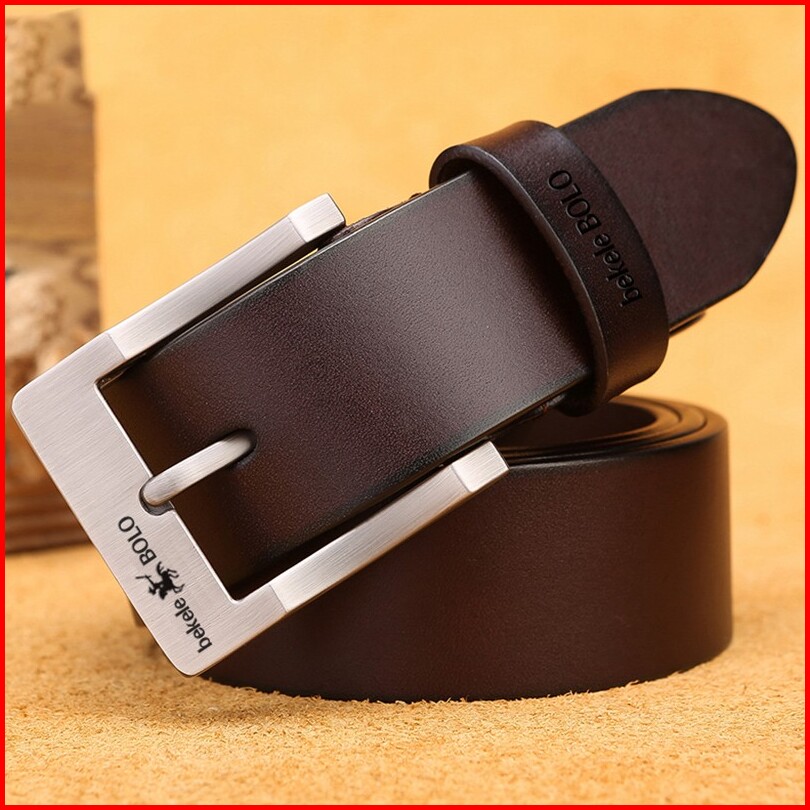 Bgs-009 Sabuk Pria Fashion Kulit Sapi 2lapisan Gaya Kancing Pin Klasik Sabuk Belt Cassual