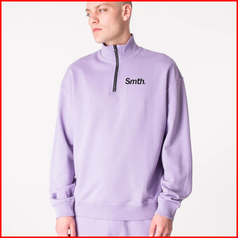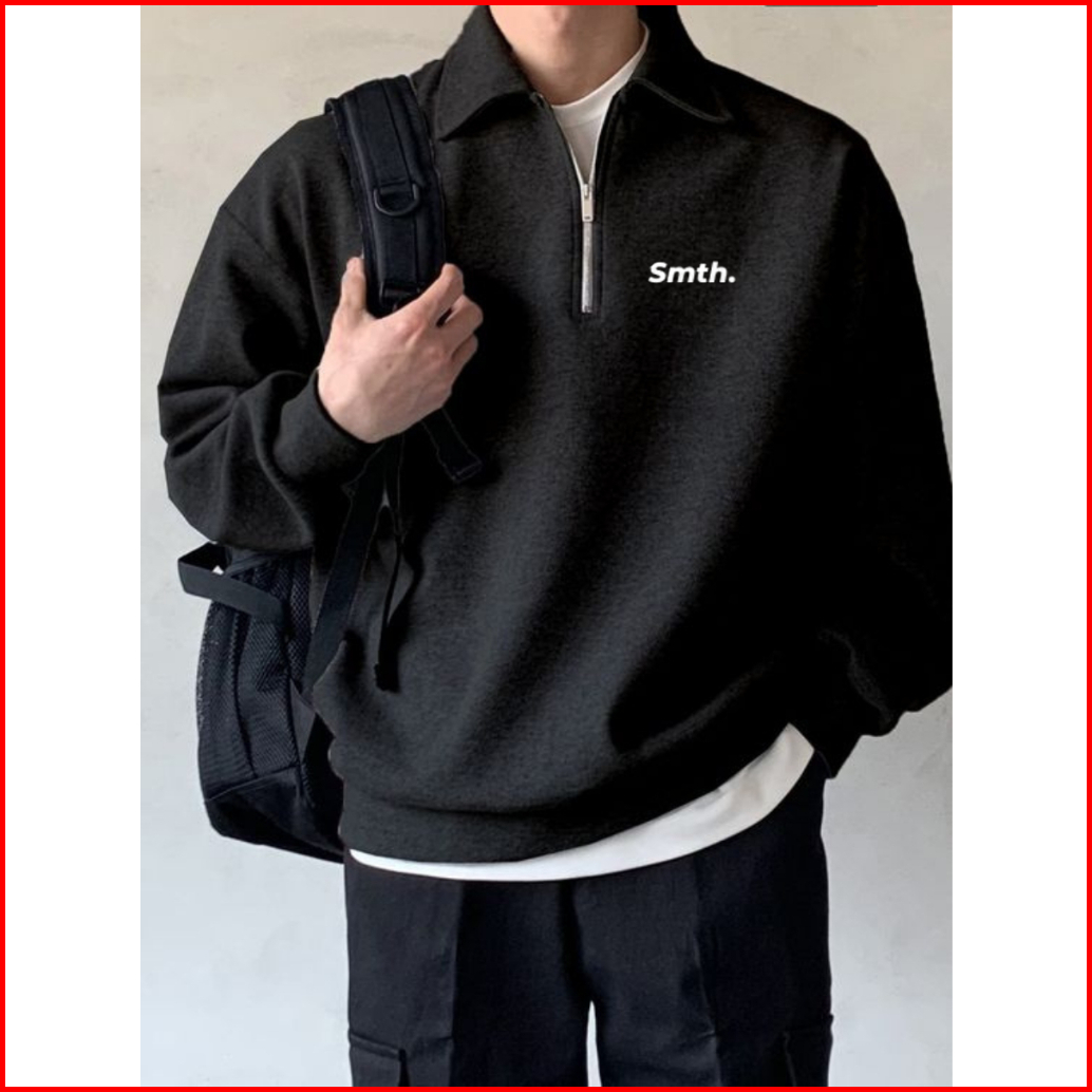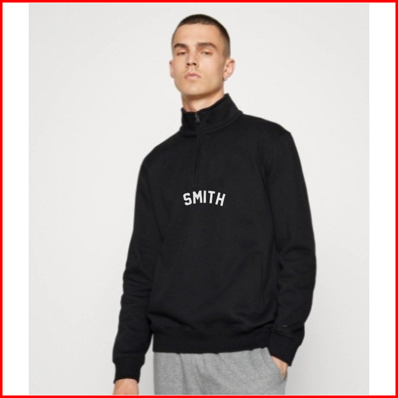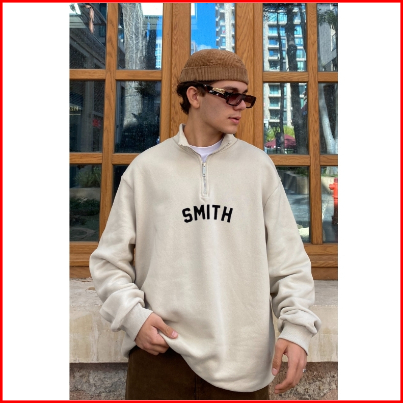 Half Zipper House Of Smth Unisex Sweter Zipper Smth Teks Print Halfzip Cream Smth Pria Wanita Terbaru Jaket Zipper Hitam