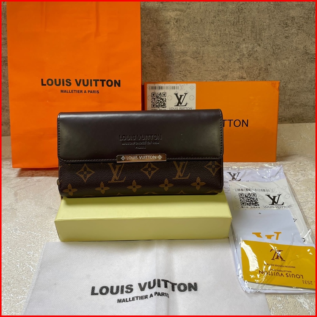 Dompet Lv Motif Mono Damier Dompet Panjang Dompet Kulit Long Wallet