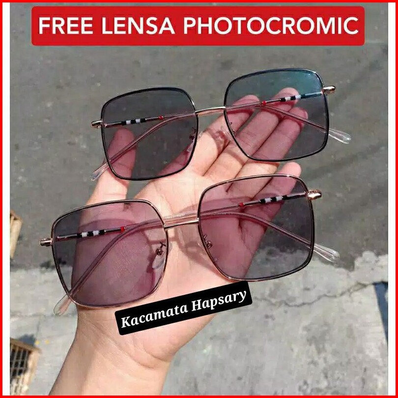 Paket Frame Lensa Kacamata Minus Anti Radiasi Photocromic Kacamata Wanita Kotak 9691