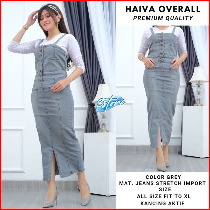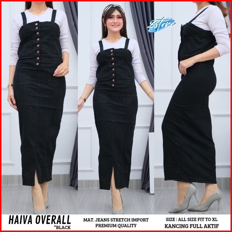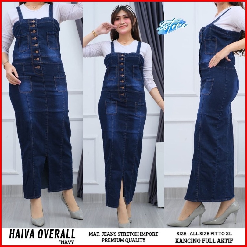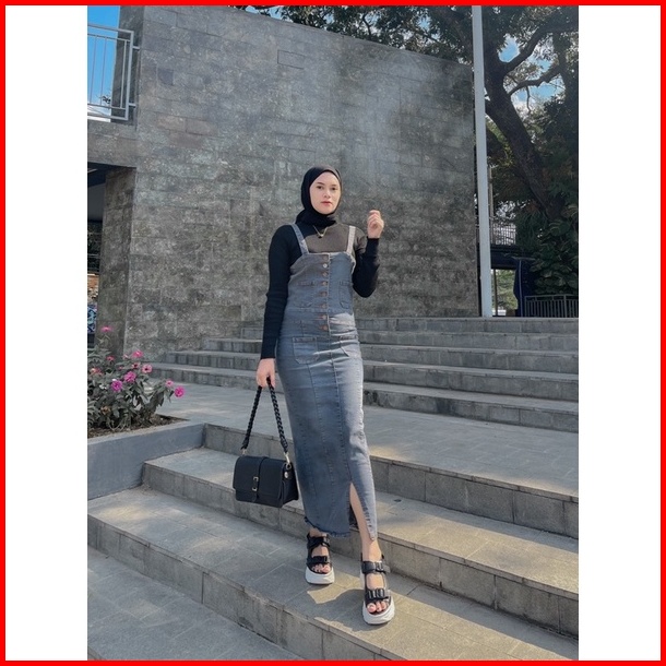 Overall Jeans Strecth Jumpsuit Rok Span Full Kancing