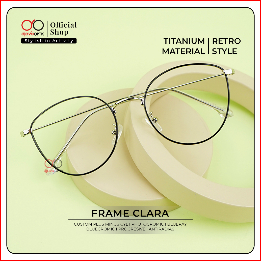 Djava Optik - Frame Clara - Kacamata Minus Photocromic Cat Eye Wanita Titanium Terbaru