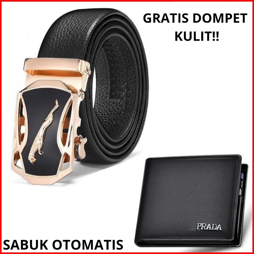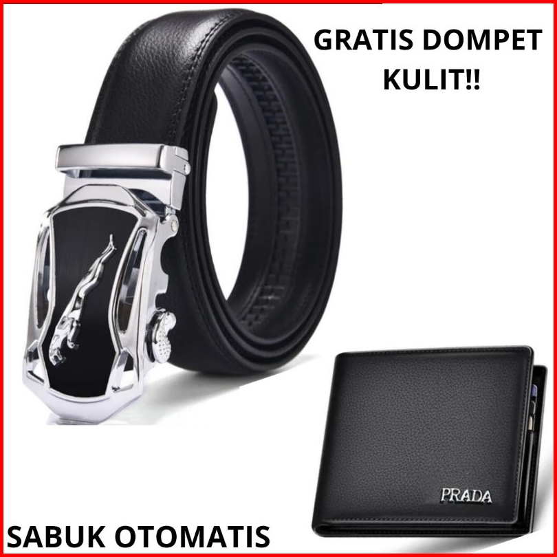 Free Dompet-sabuk Kulit Lapisan Jaguar Otomatis Pria Ikat Pinggang Premium Import Kepala Besi Kuat Kokoh Dan Elegan