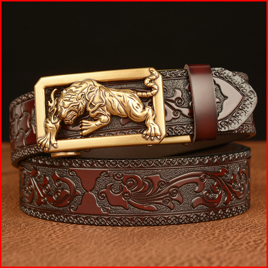Sabuk Ikat Pinggang Pria Kulit Sapi Asli Import Macan Harimau