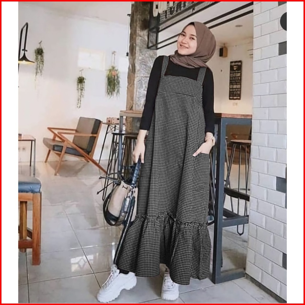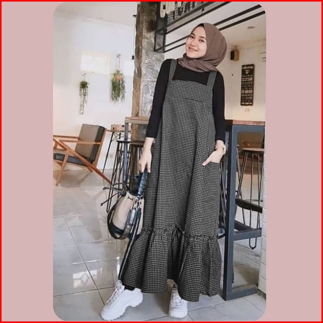 Beautyshirt Square Overall Wanita Motif Kotak-kotak Best Seller 2025 Korean Style 2025 Bahan Oxford