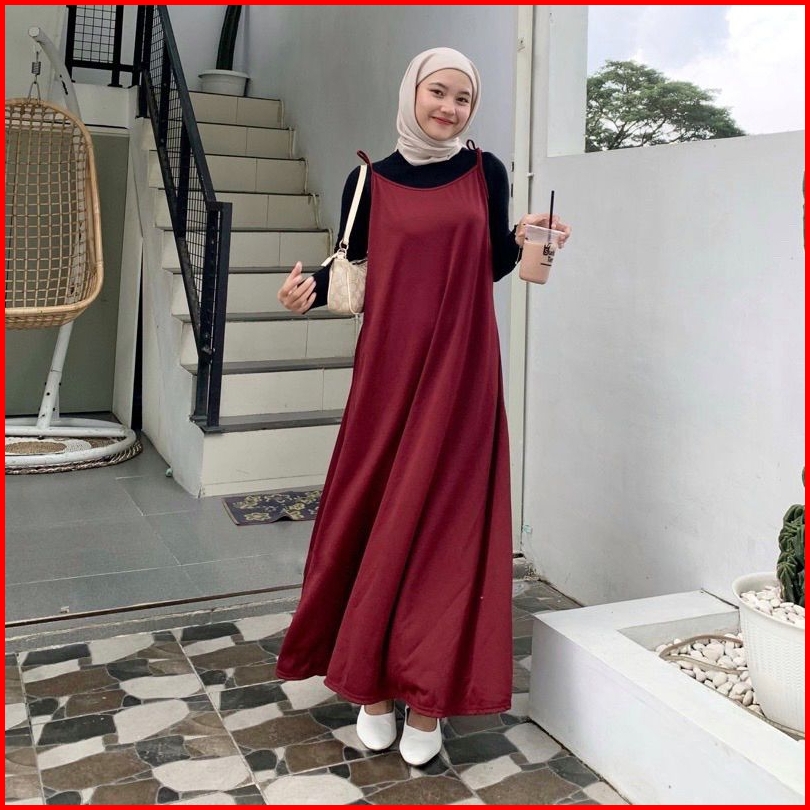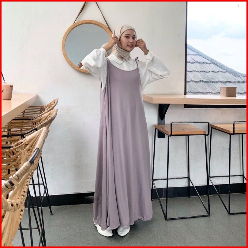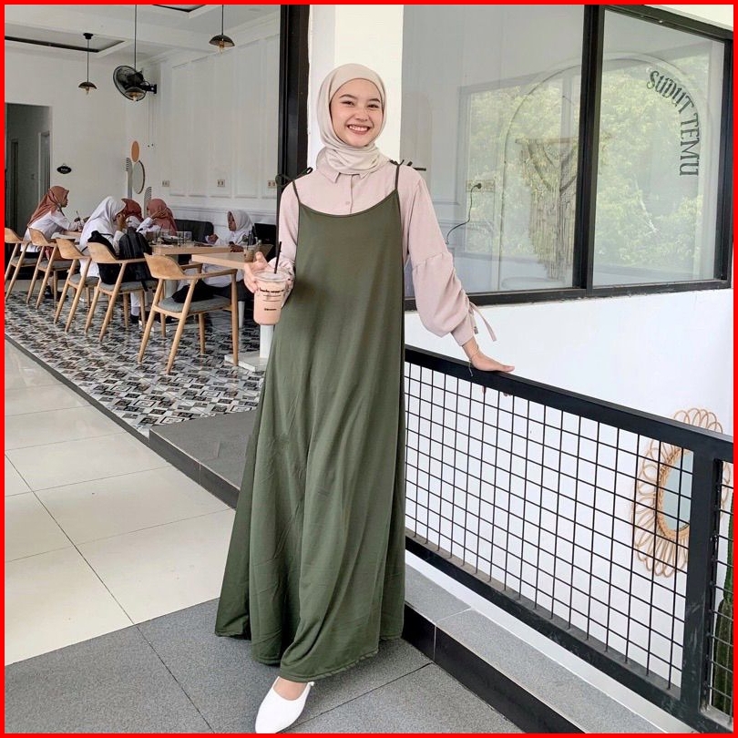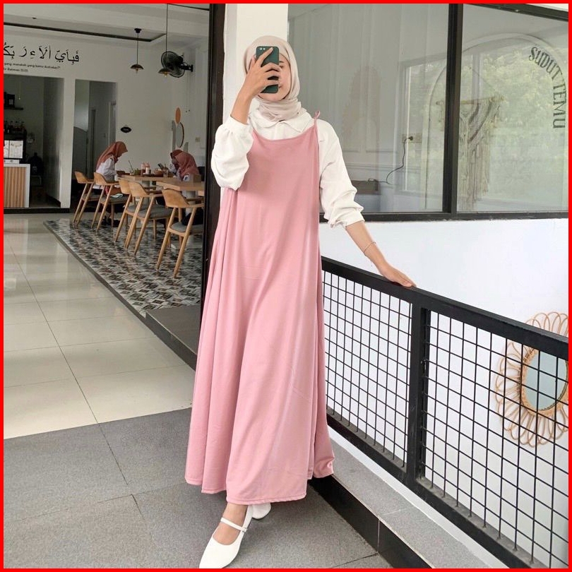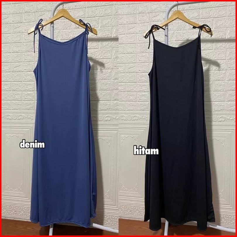 Overall Dress Tali Tanpa Lengan Bahan Crinkle