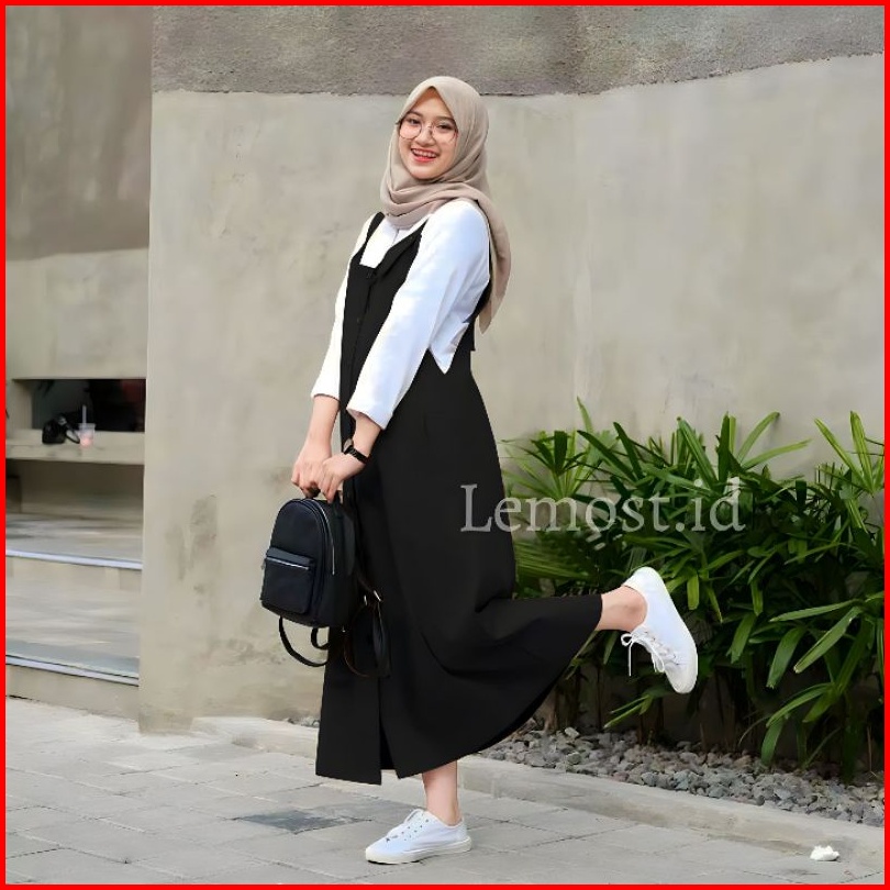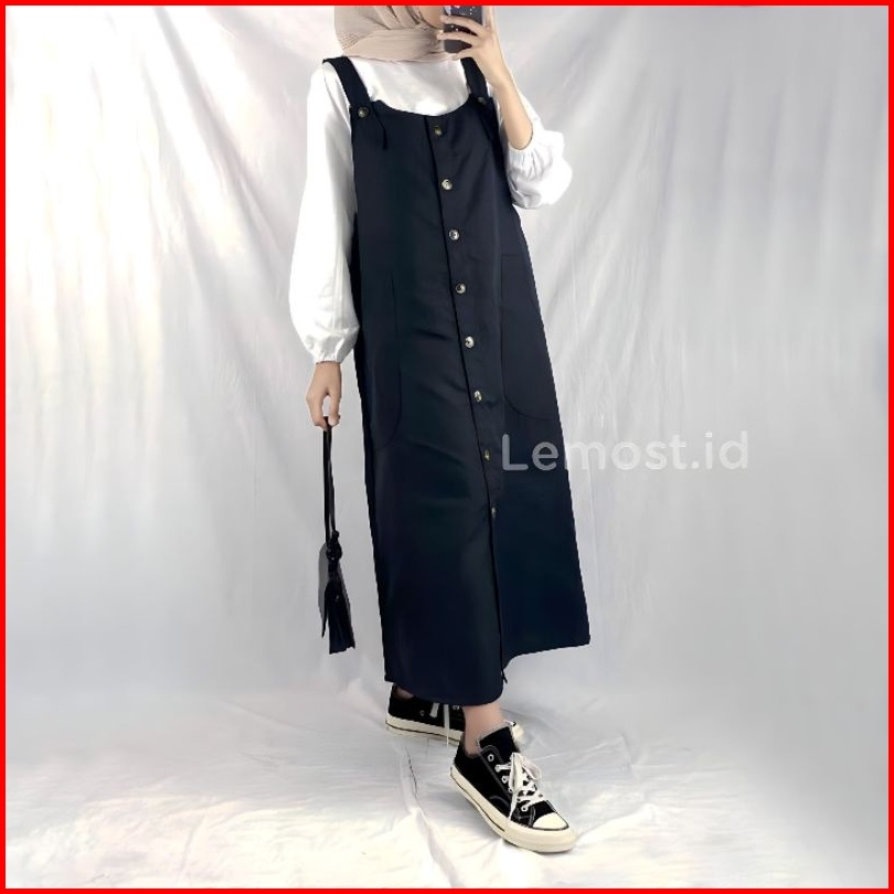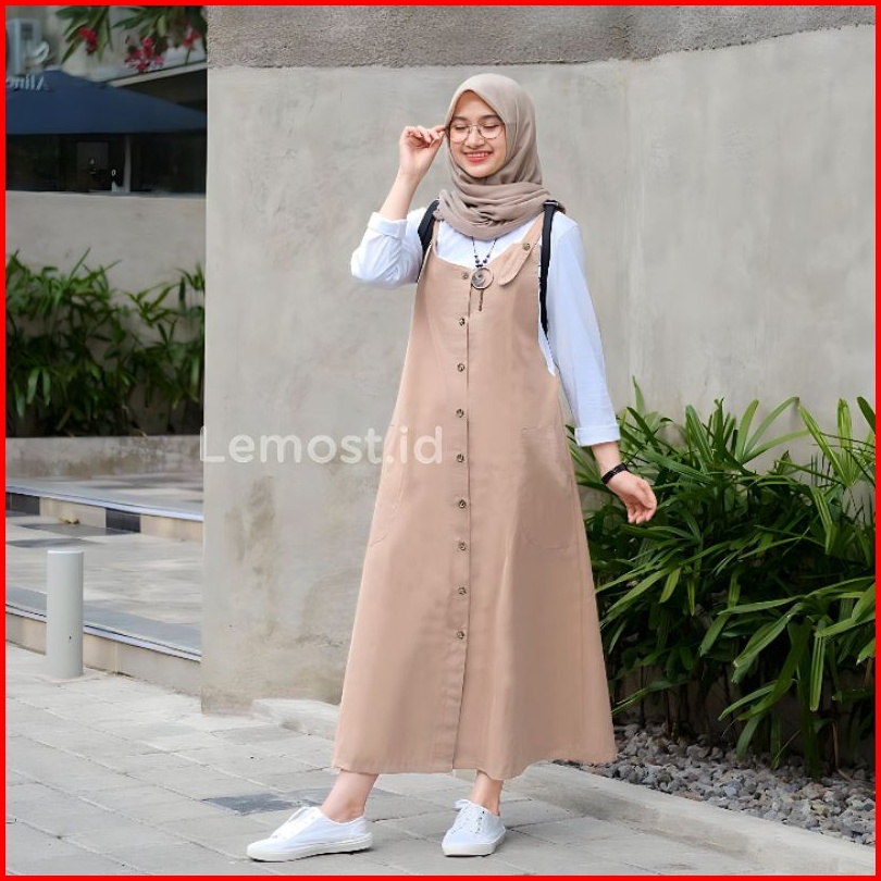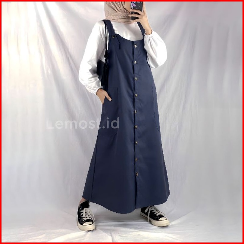 Maggie Overall Maxi Dress Jumpsuit Wanita Allsize Fit Xl Bahan Drill Premium