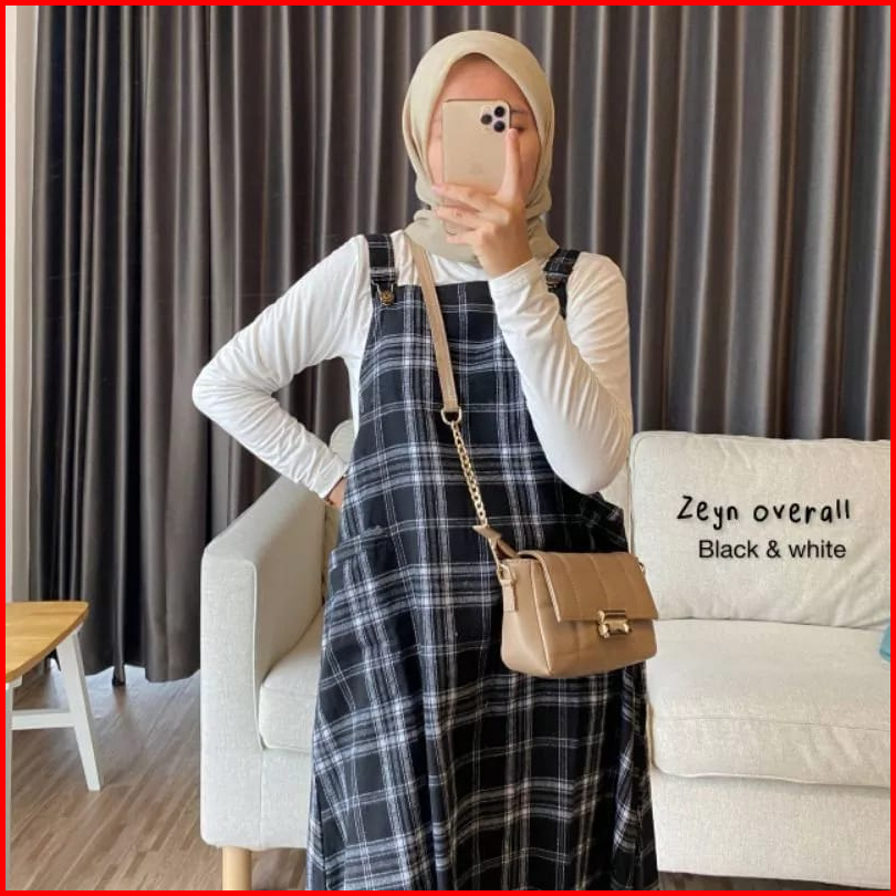 Overall Flanel Zeyn Overall Motif Kotak Bahan Flanel Best Seller Overall Dress