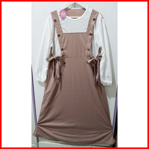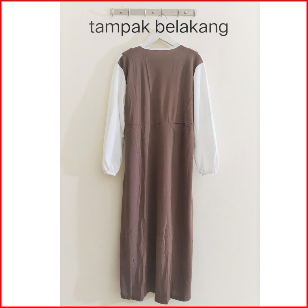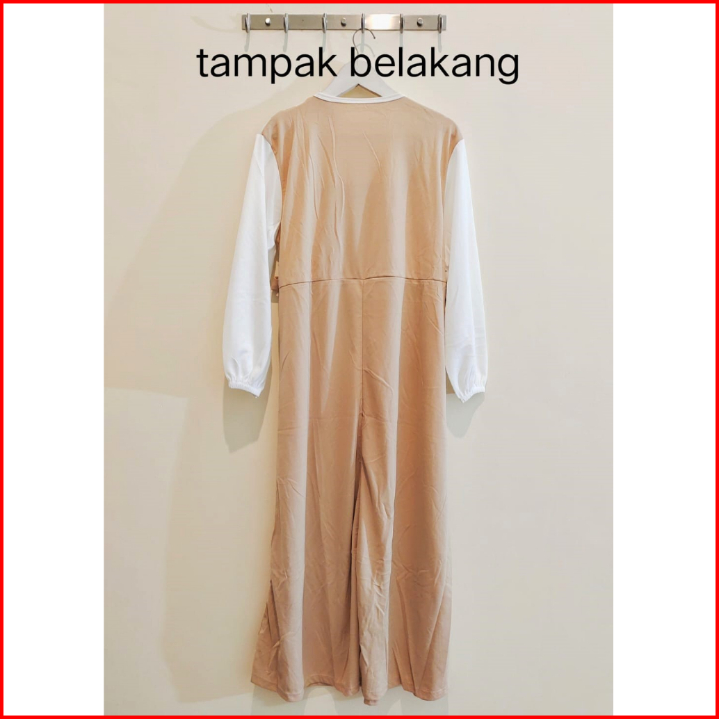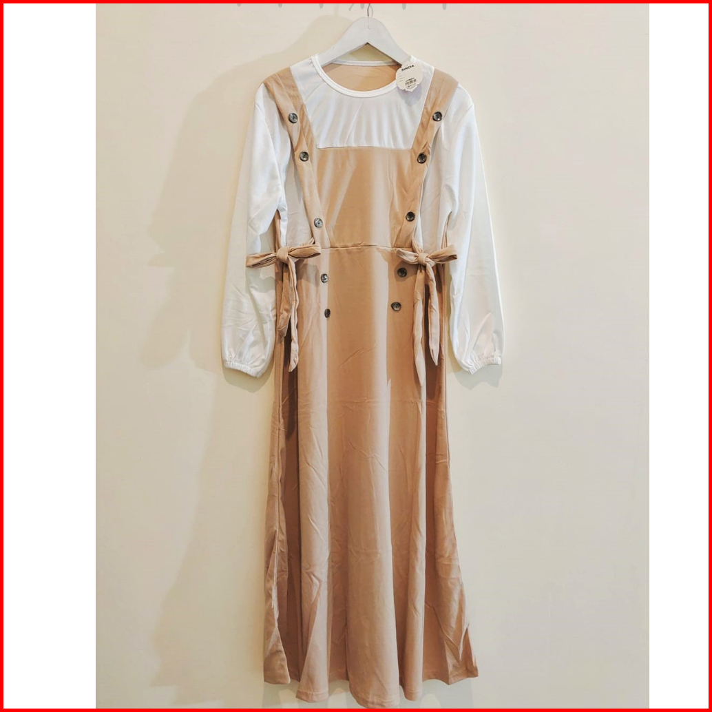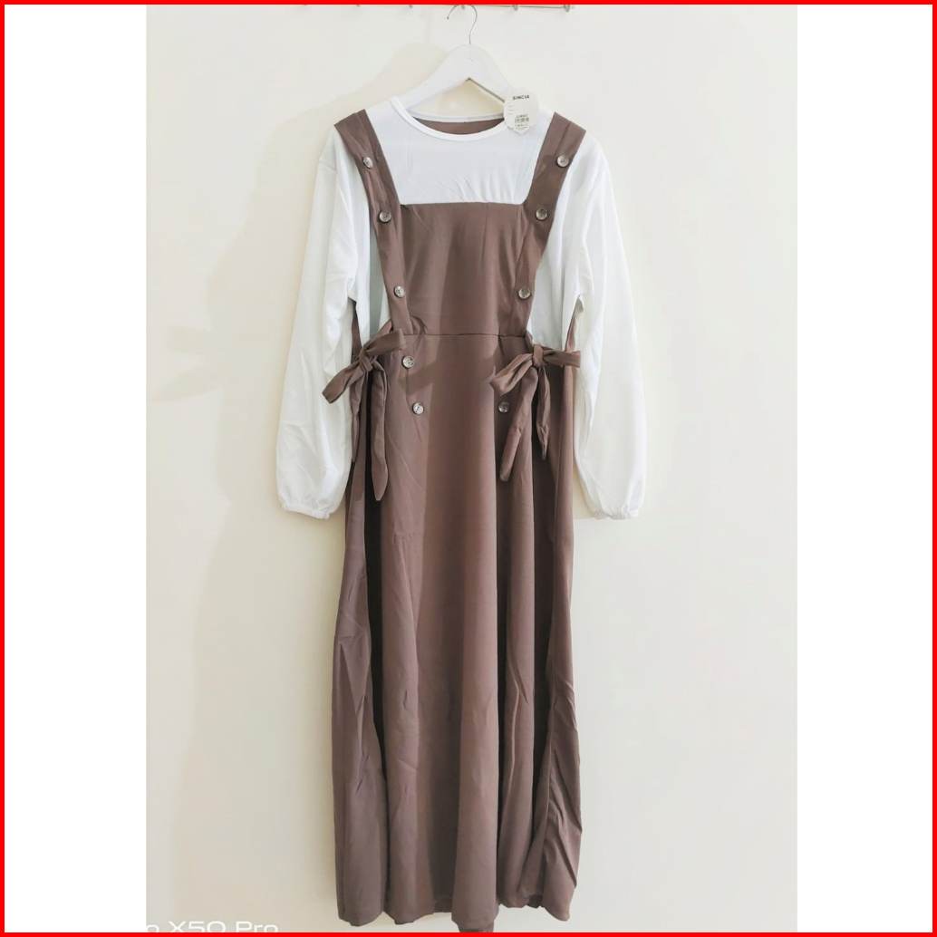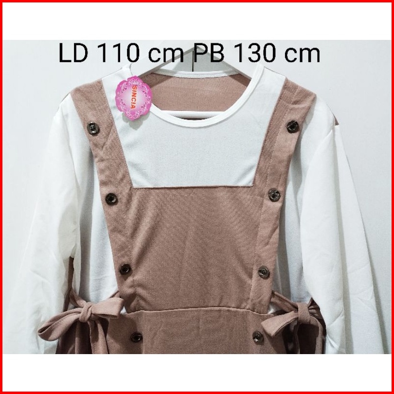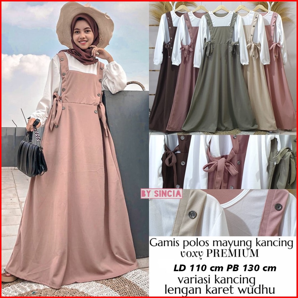 Gamis Mayung Model Overal Kancing Tali Pinggang Sampiny Lengan Karet Wudhu Bahan Voxy Merk Sincia