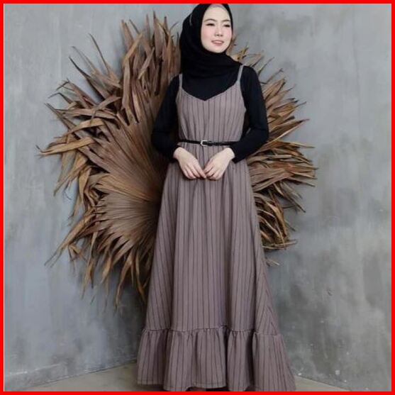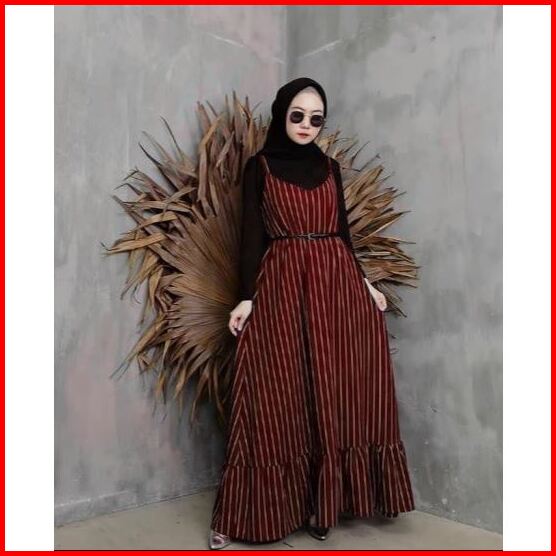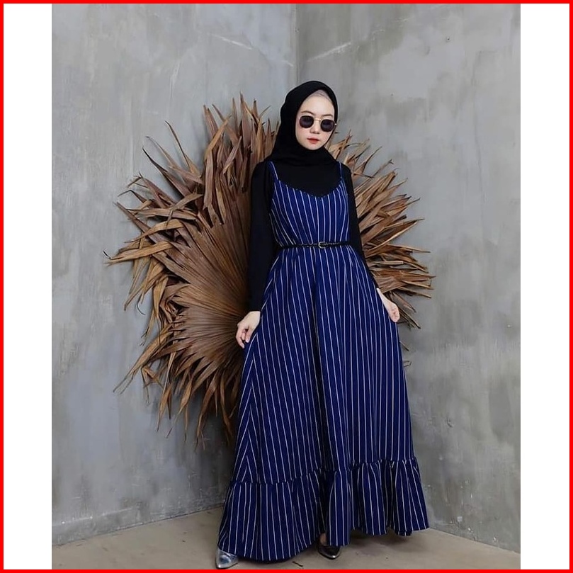 Beautyshirt Modi Overall Free Belt Gamis Dress Motif Salur Bergaris Lebaran 2025 Terbaru