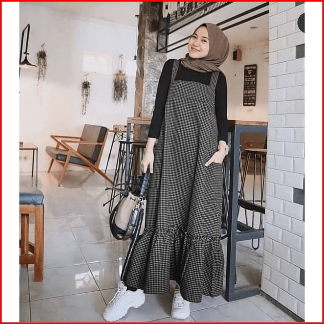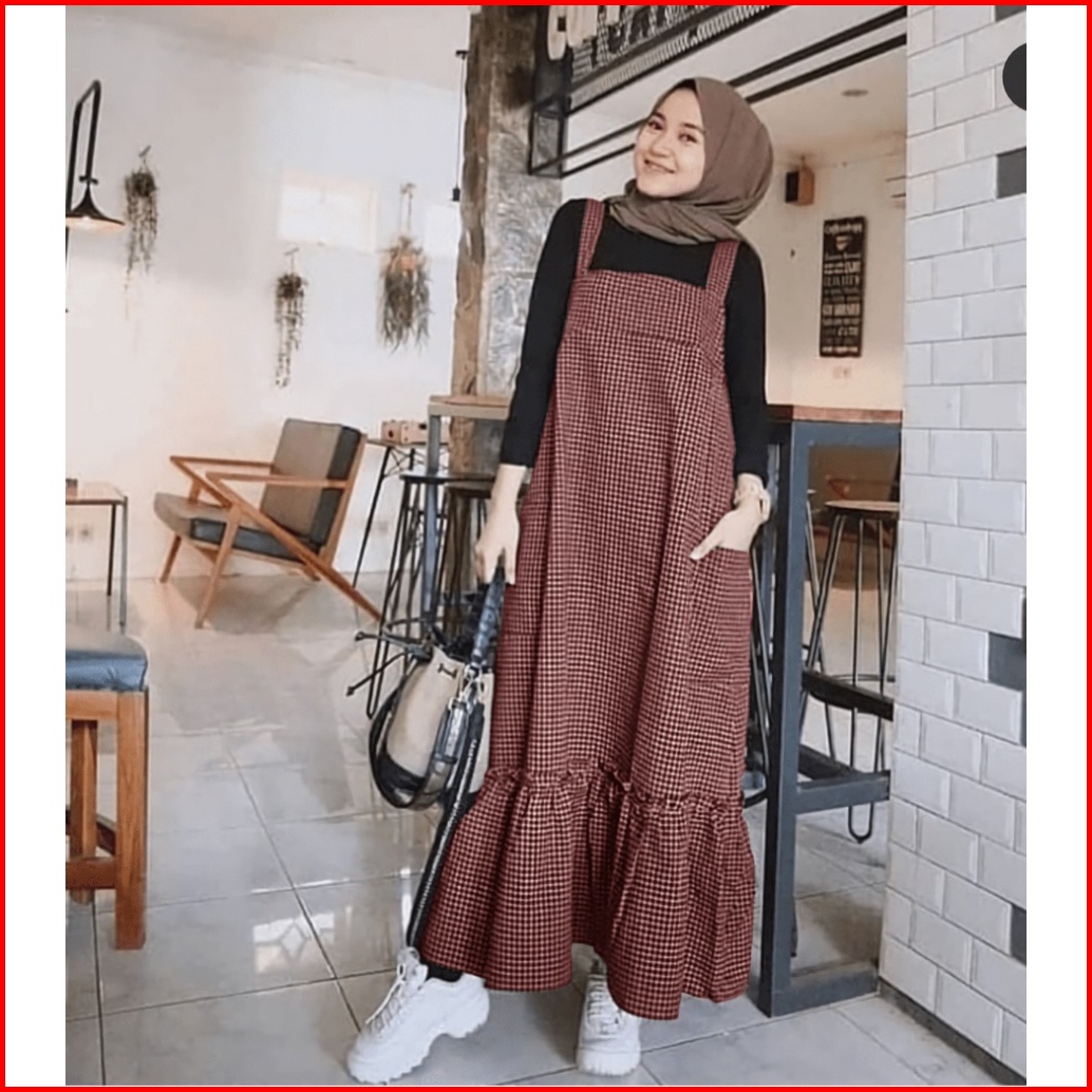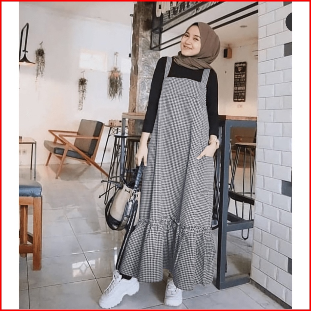 Overall Dress Motif Kotak Korean Style Wanita Overall Corduroy Panjang Baby Playsuit