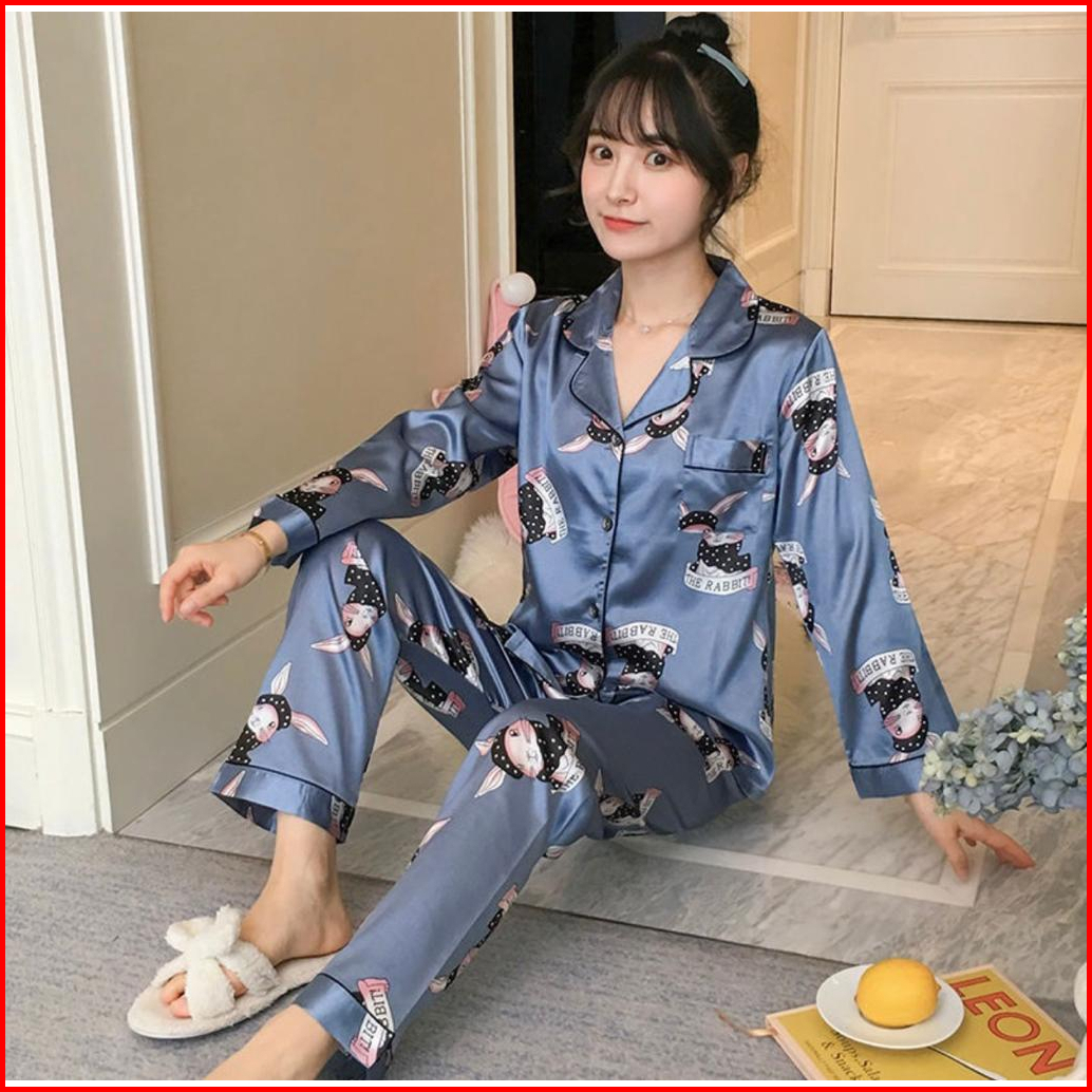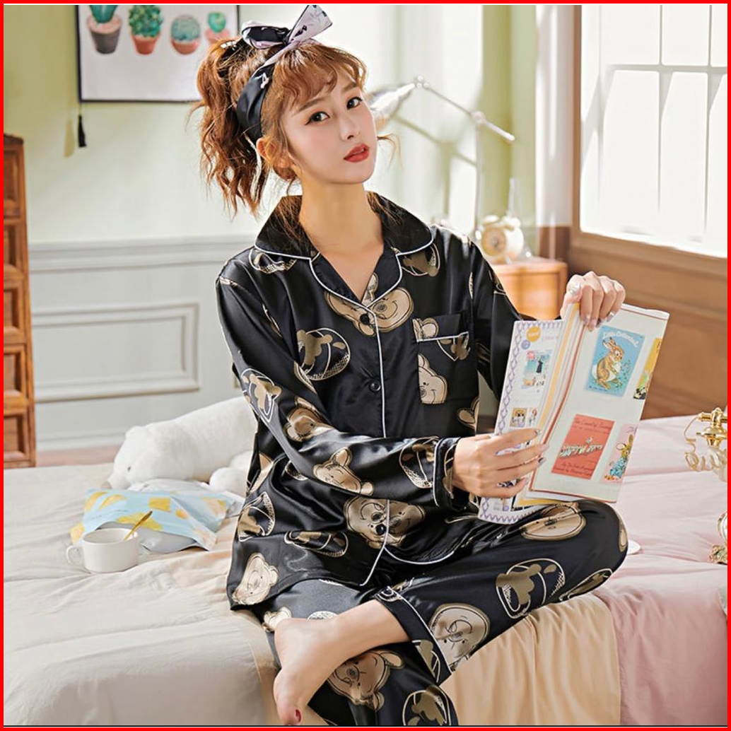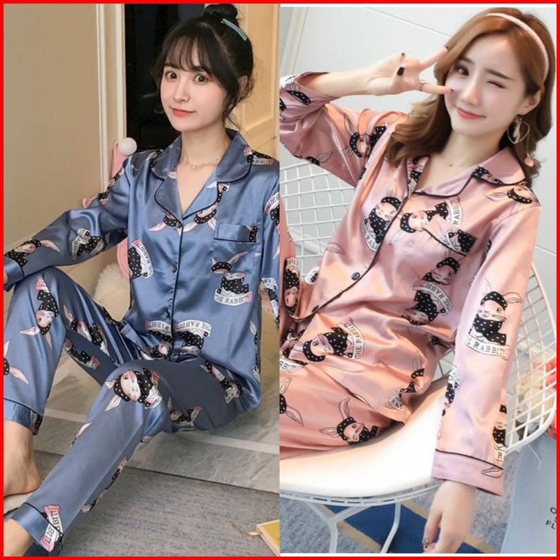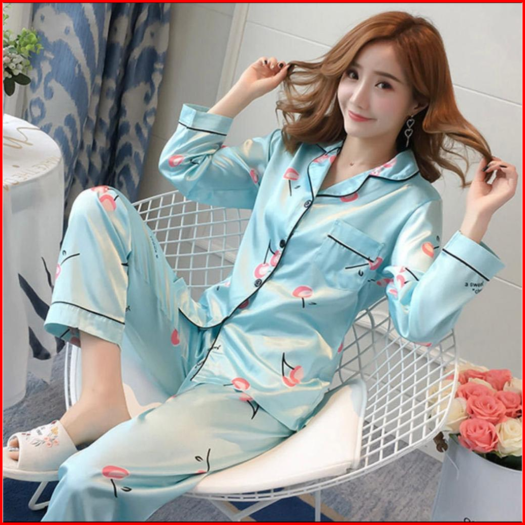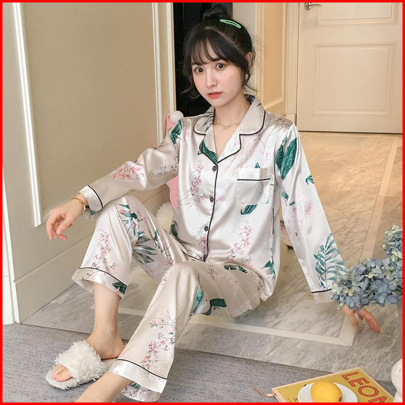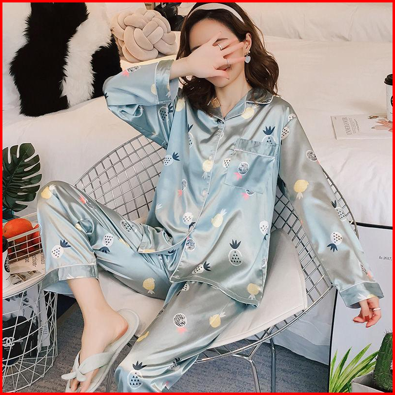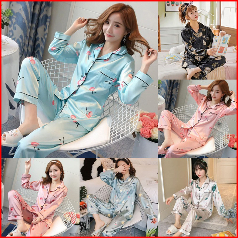 Ready Stock Baju Tidur Piyama Set Bahan Satin Motif Lengan Panjang Celana Panjang Piyama Import Super High Quality Baju