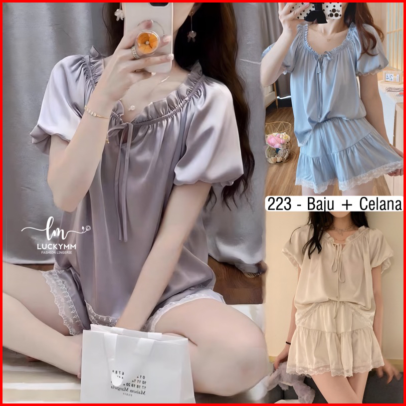 Baju Tidur Satin Wanita Piyama Setelan Pajamas Satin Sleepwear Satin Baju Tidur Setelan Wanita 223
