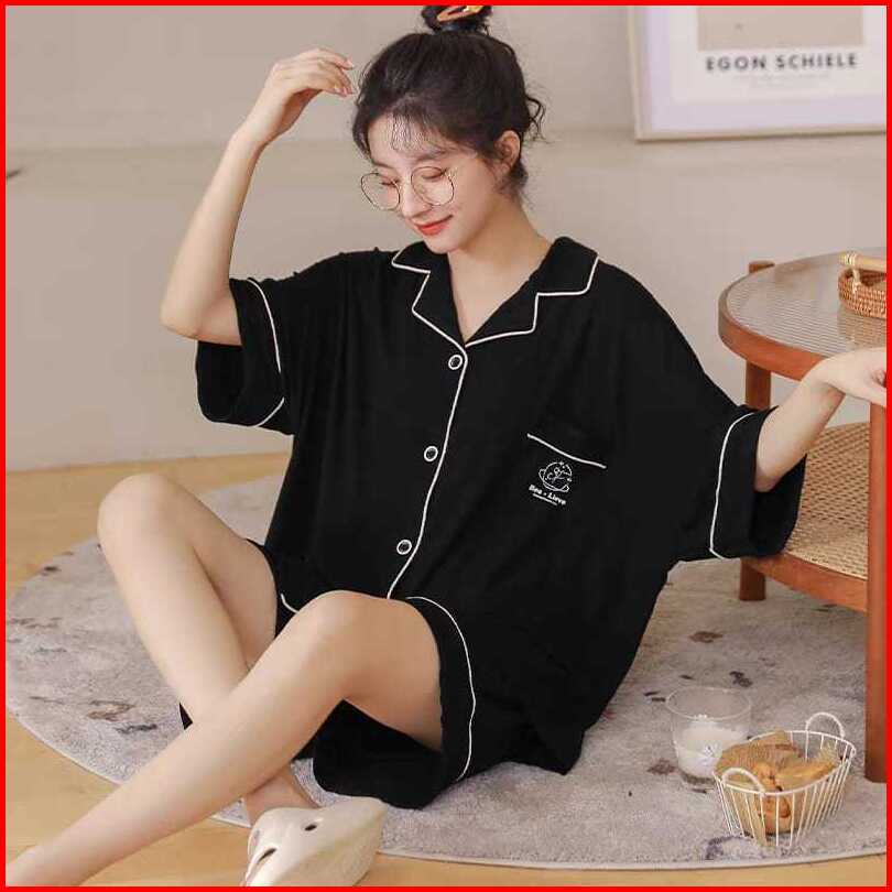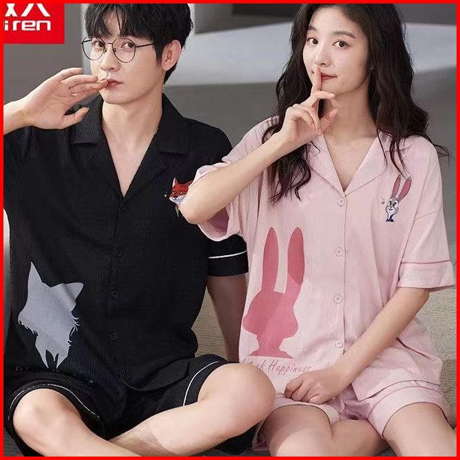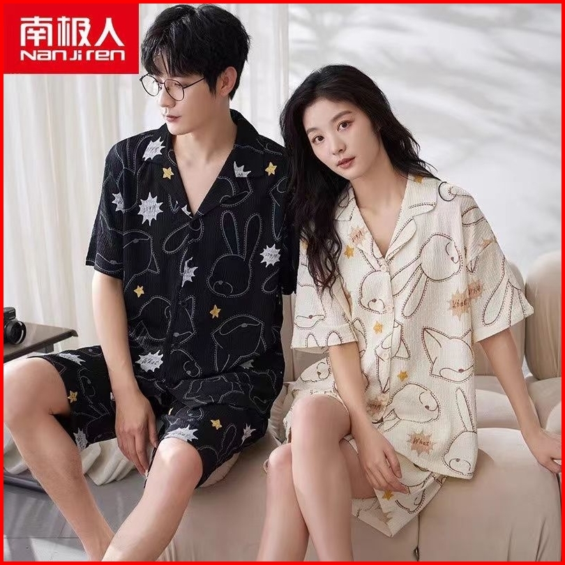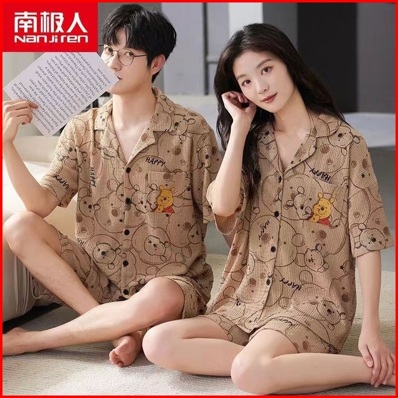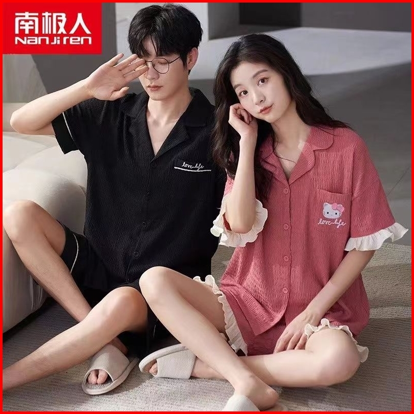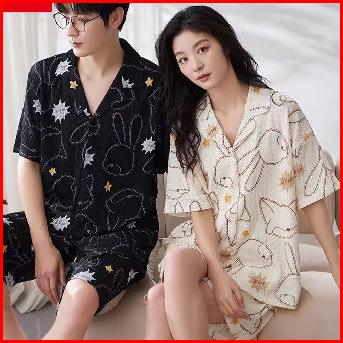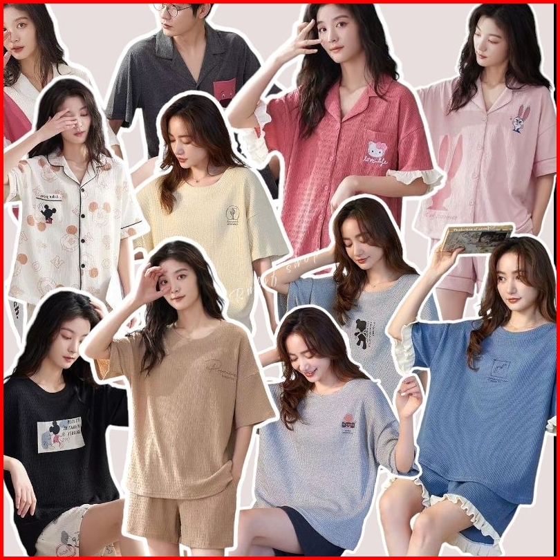 Rulif Baju Tidur Piyama Wanita Pria Couple Dewasa Bahan Katun Lengan Pendek Krah Theutopi 1020-6502