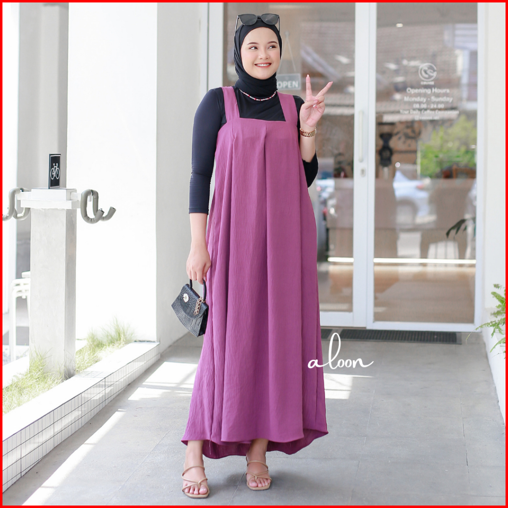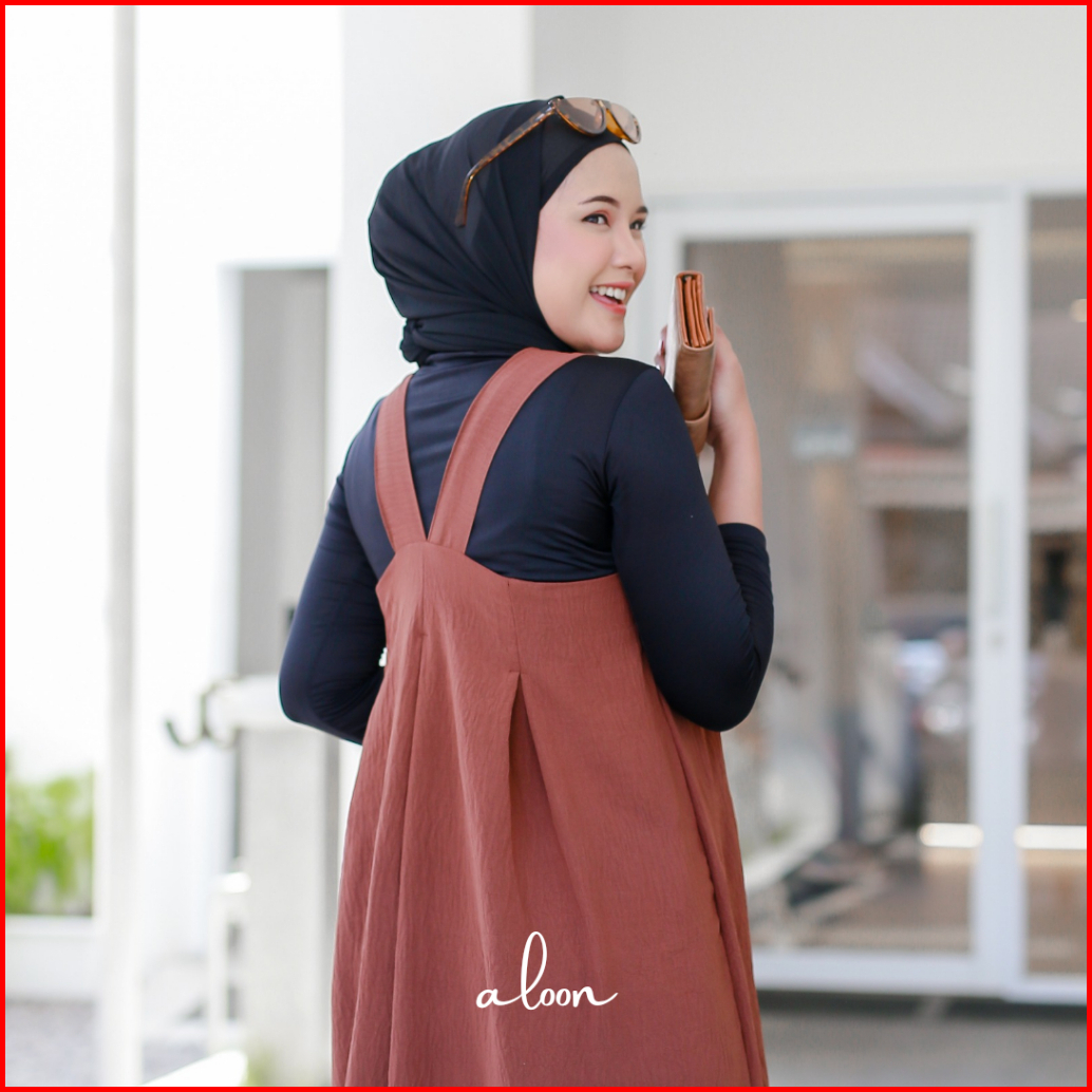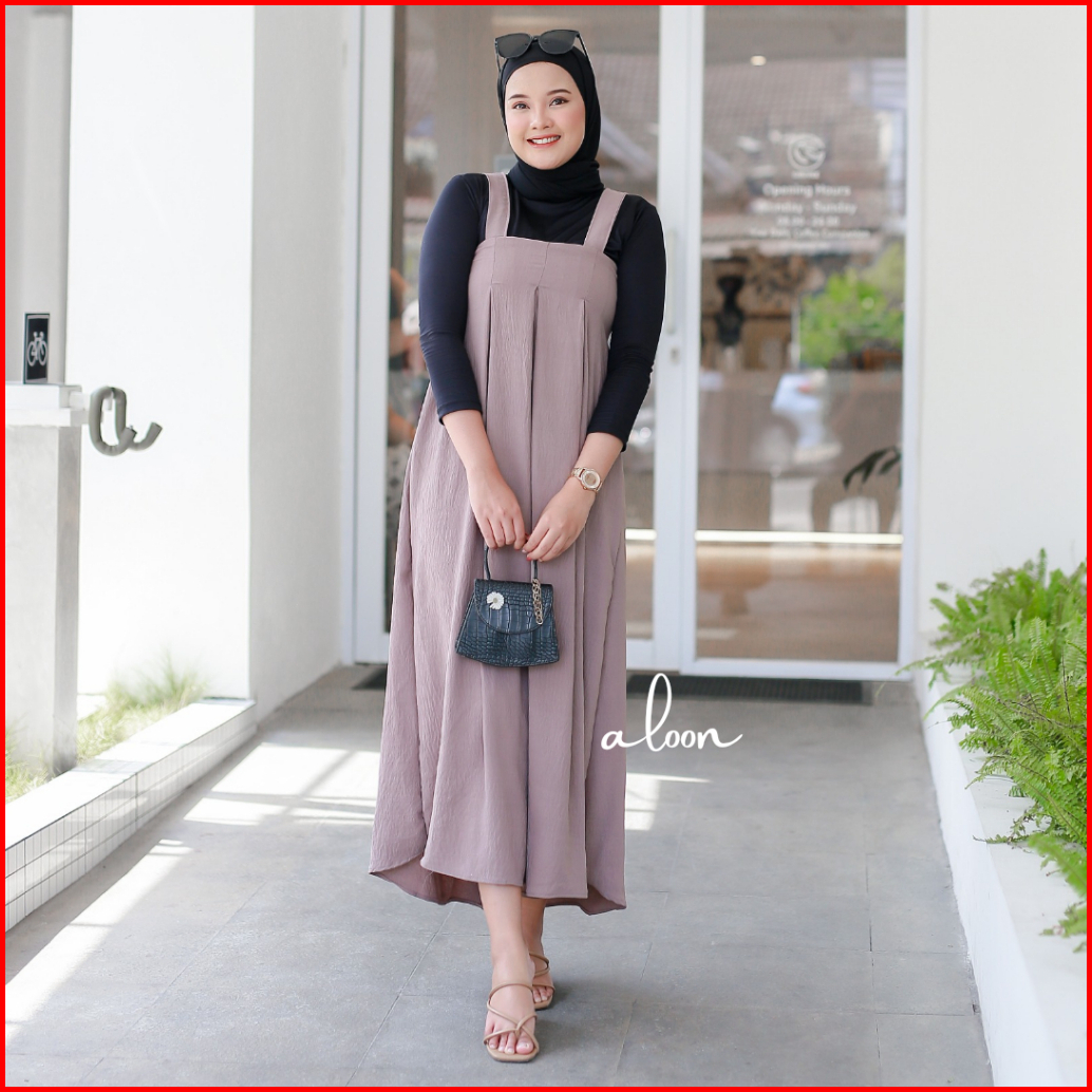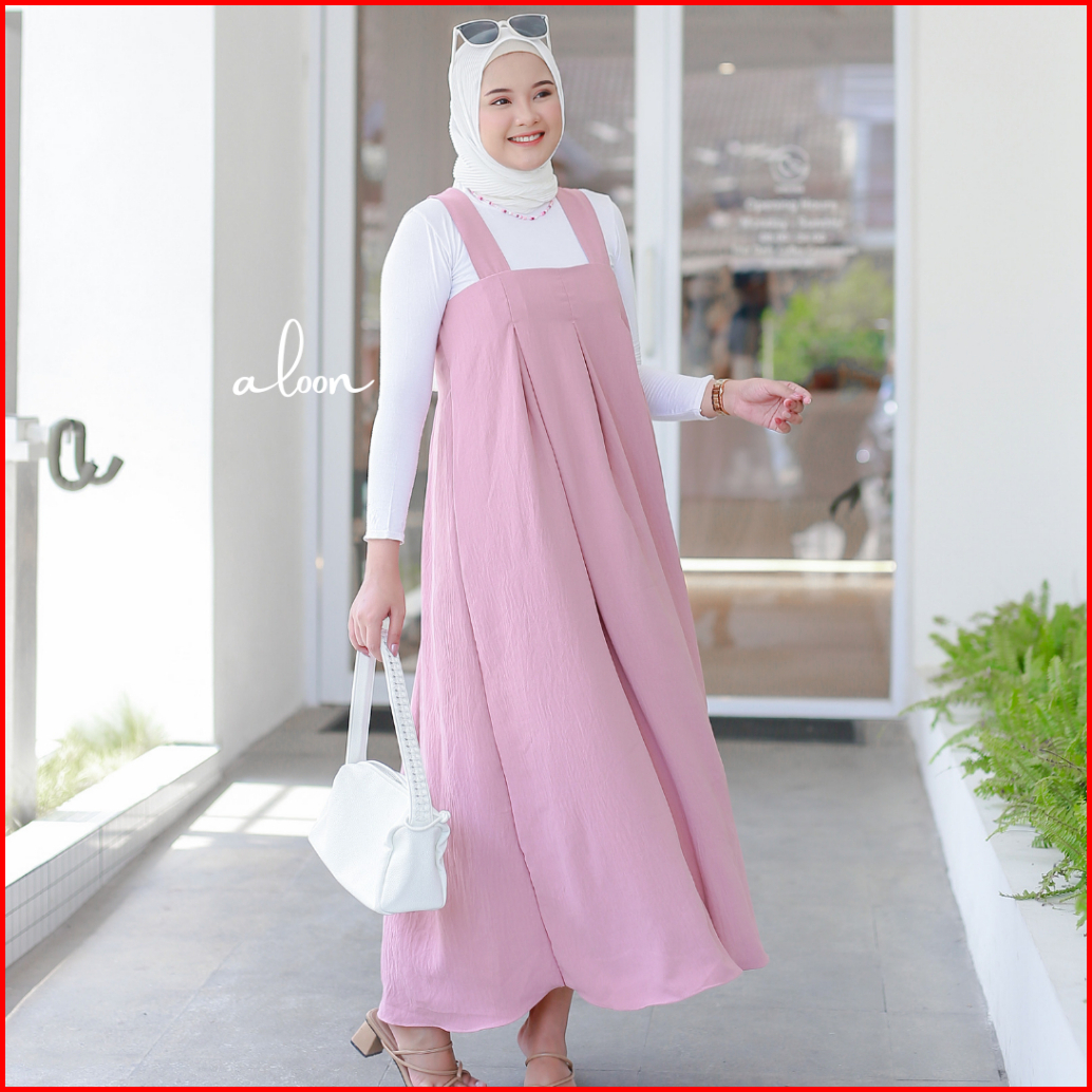 Livy Overall Crinkle Airflow Overall Dress Wanita Vintage Korea