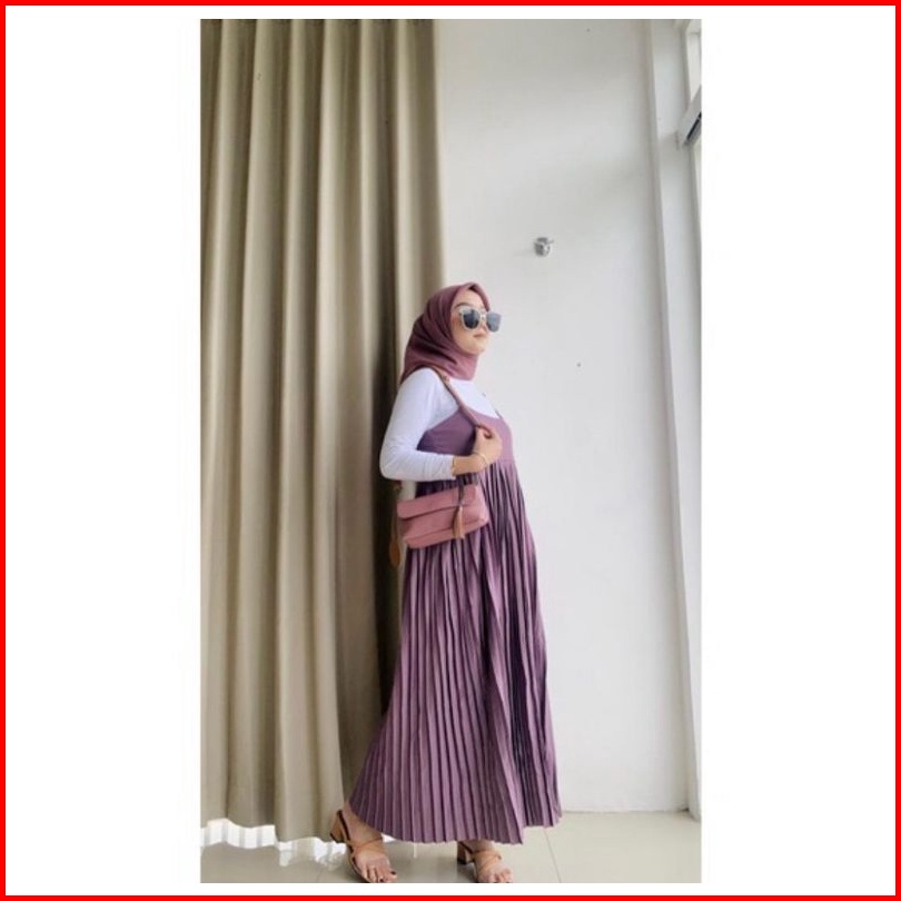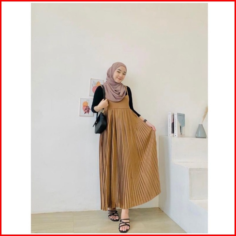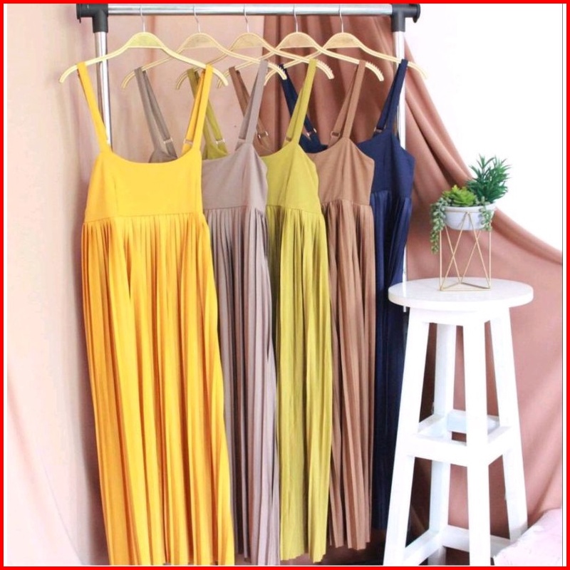 New Dress Polos Overall Plisket Premium Polos Zipper Belakang Terbesseler Dress Midi