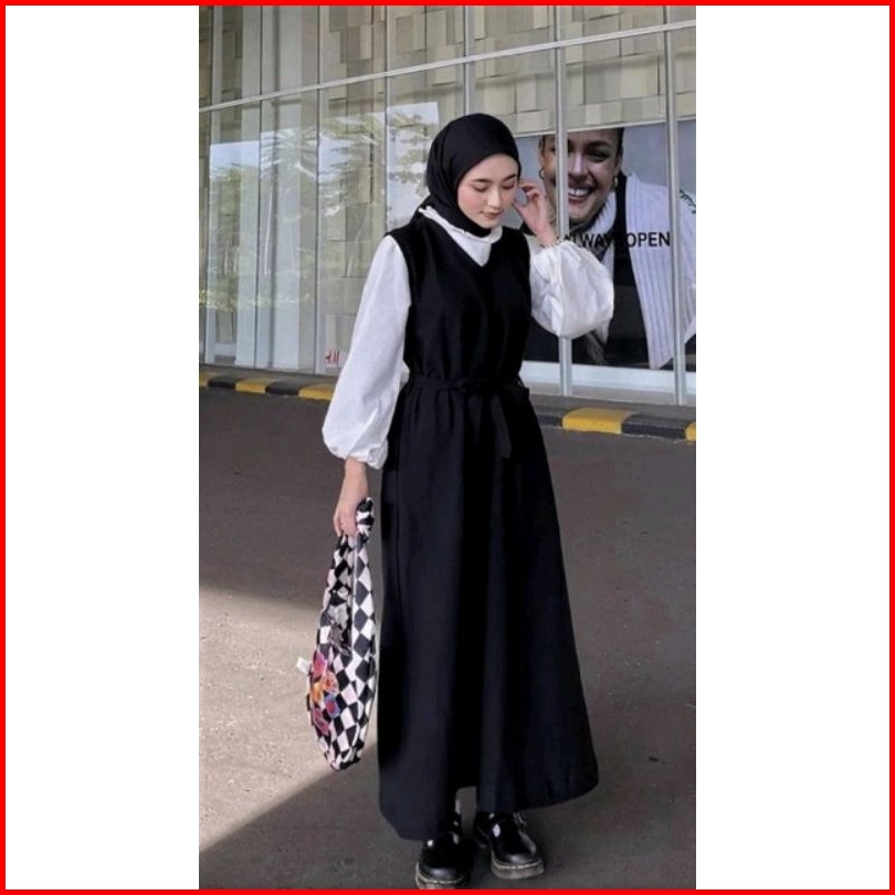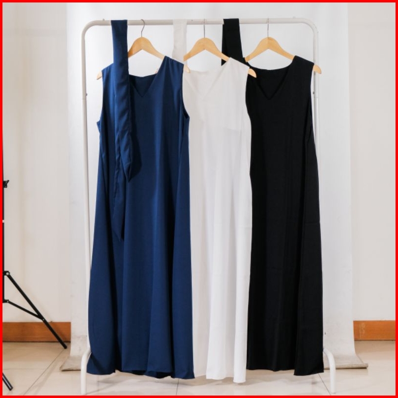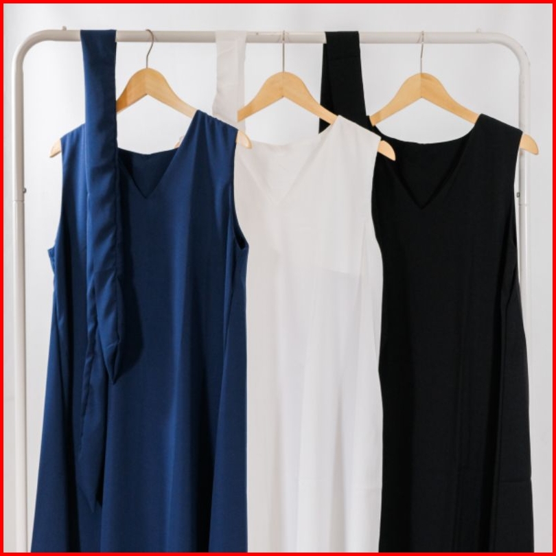 Long Karerina Overall Kerah V Inner Dress Gamis Tanpa Lengan Sleeveless Bumil Overall Jumbo Size S - 4xl