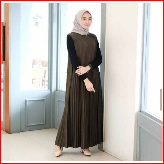 Yoona Dress Plisket Overal Dress Plisket Wanita All Size