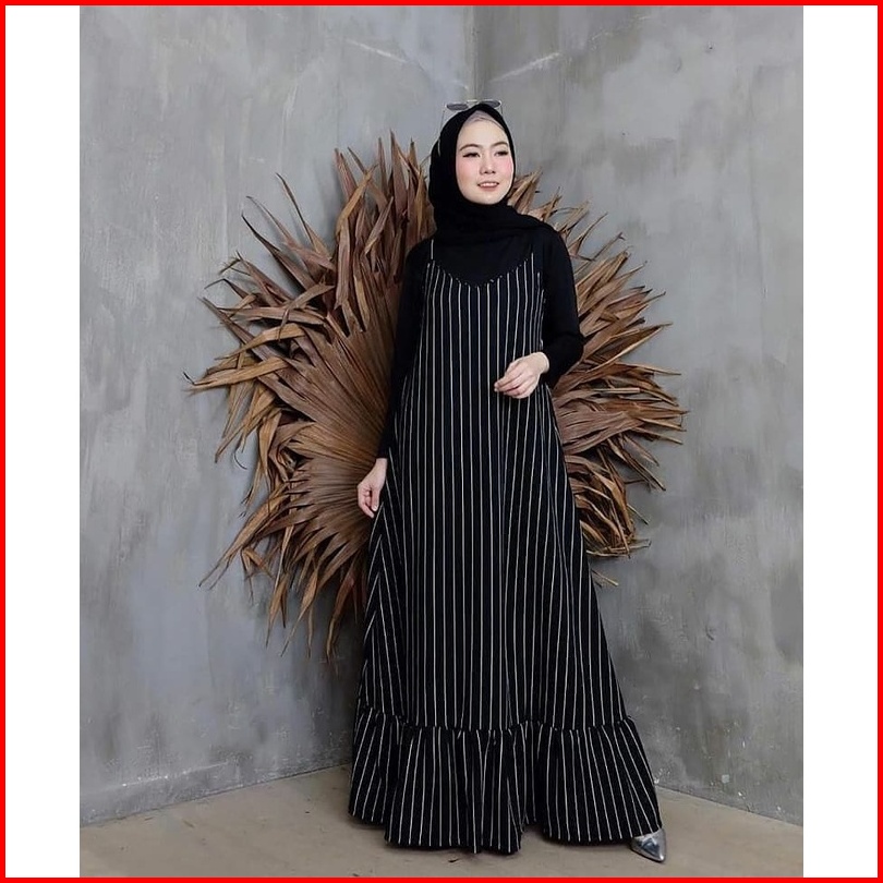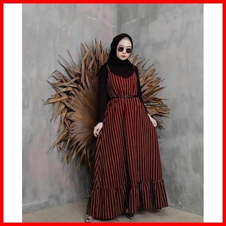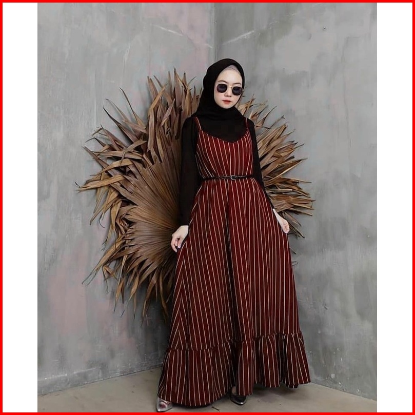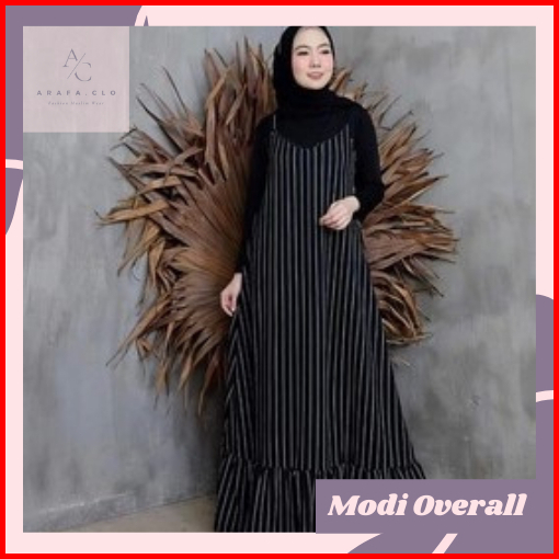 Arafa - Modi Overall Salur Wanita Bahan Monalisa Premium Free Belt Overall Kekinian Dress Korean