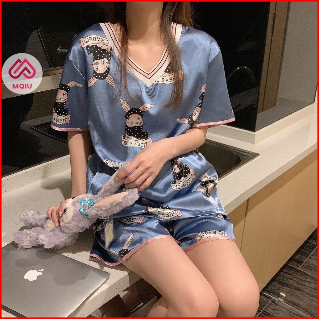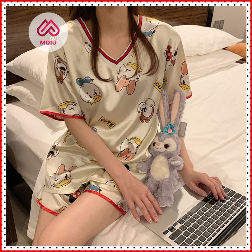 Mqiu - Set Baju Tidur Wanita Piyama Sutra Wanita D881