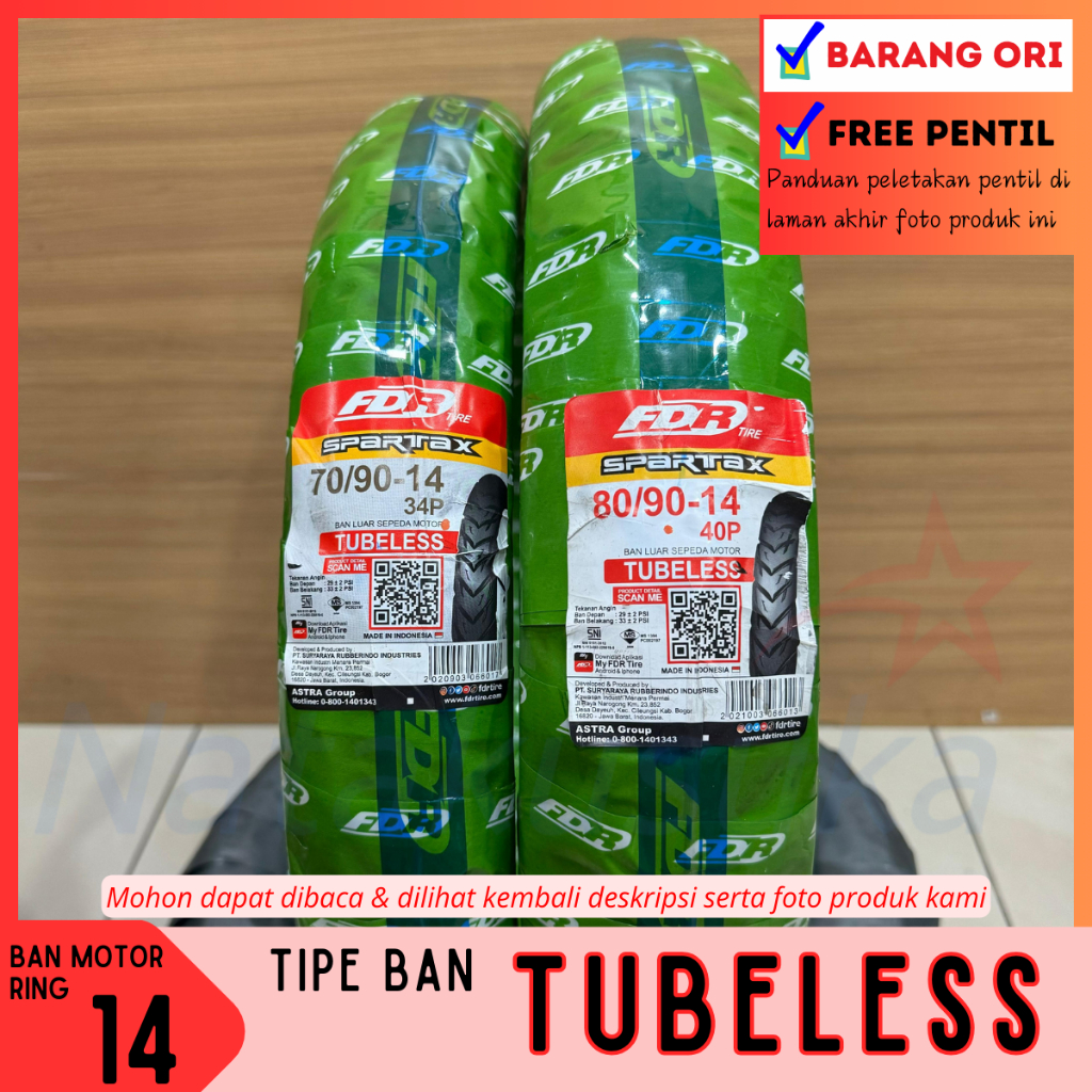 Paket Ban Motor FDR Spartax 70/90&80/90-14 Tubeless (TL) Motor Metic