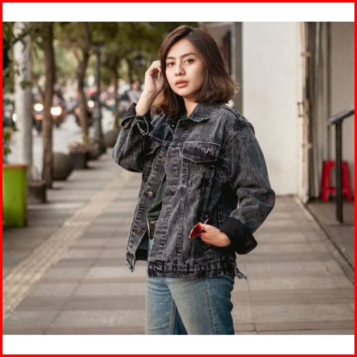 Jaket Jeans Premium Wanita Sandwash Muda - Saku Dalam