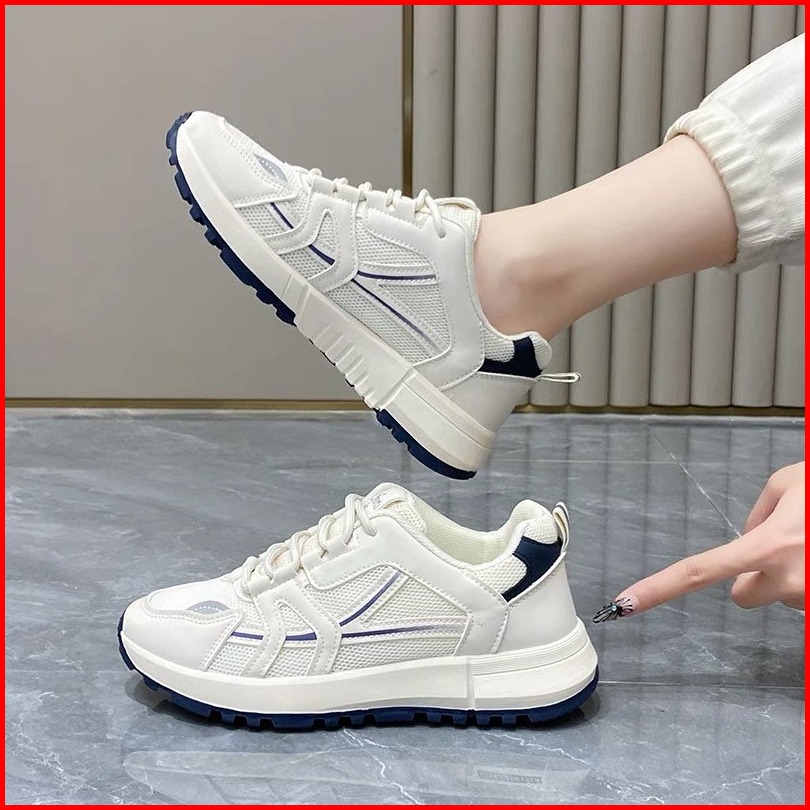 Sneakers Nyaman Chic Untuk Wanita Sepatu Olahraga Shoes Woman Sport Biru Khaki St076 Casual Sport