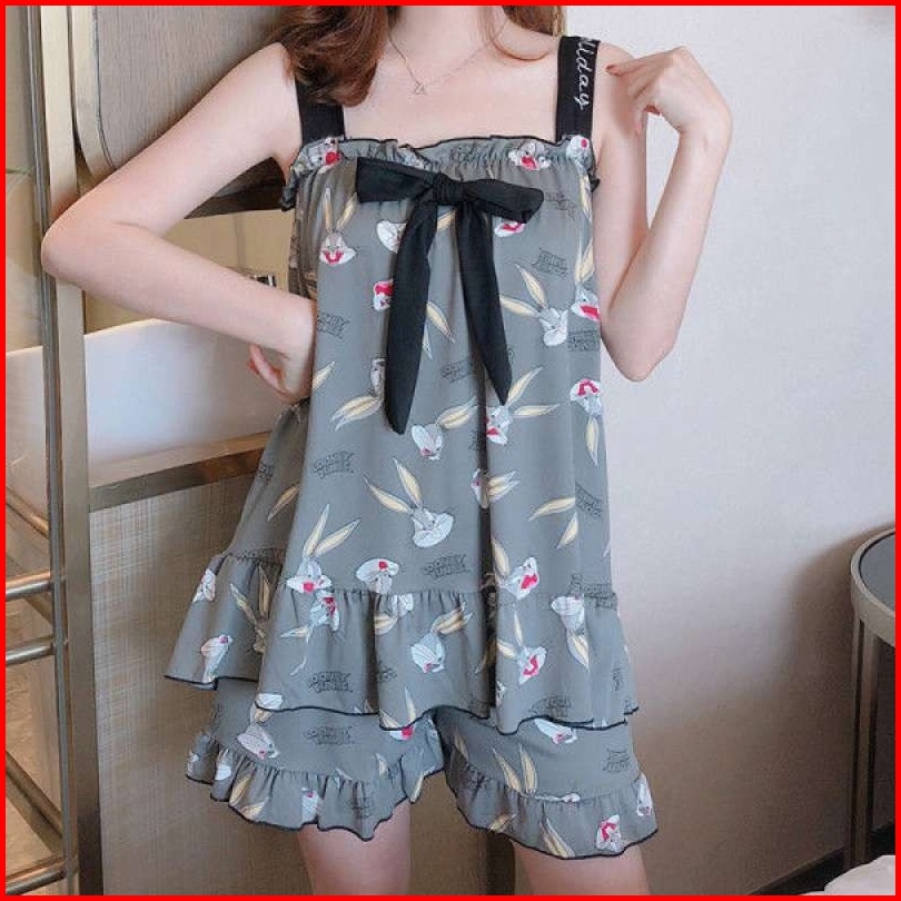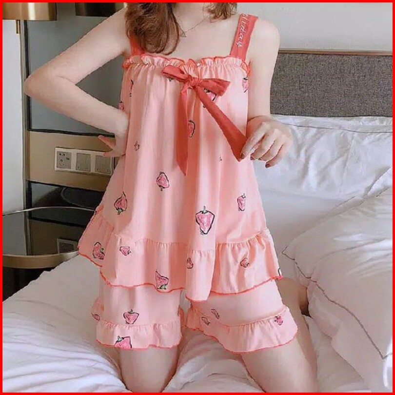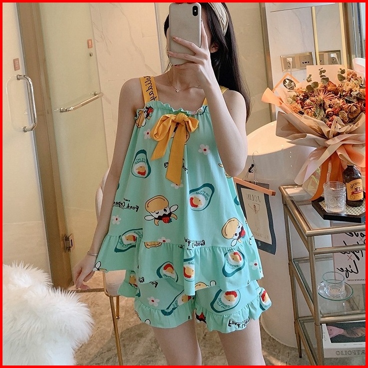 Yooyi Baju Tidur Wanita Piyama Baby Doll Setelan Perempuan Dewasa Tanpa Lengan Celana Pendek Remaja Desain Korea Motif K